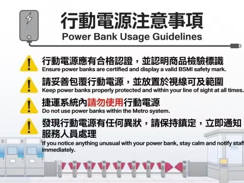 【點新聞報道】流動電源(香港俗稱尿袋,內地稱充電寶)品質參差,經常發生自燃甚至爆炸意外。台北捷運1月23日公布新規,呼籲旅客進入捷運範圍內請勿使用流動電源並應妥善保管,若因使用或保管不慎導致失火等公共危險情況,將依法究辦及求償。