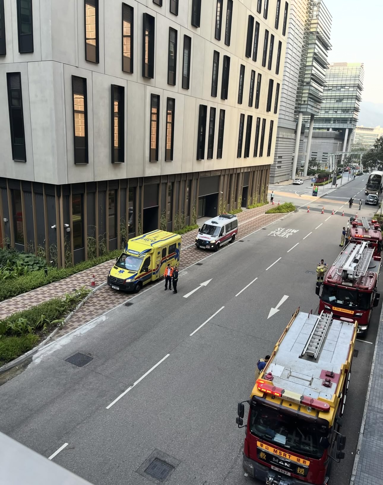 (有片)沙田科學園停車場私家車起火冒煙 約50人疏散 幸無人受傷