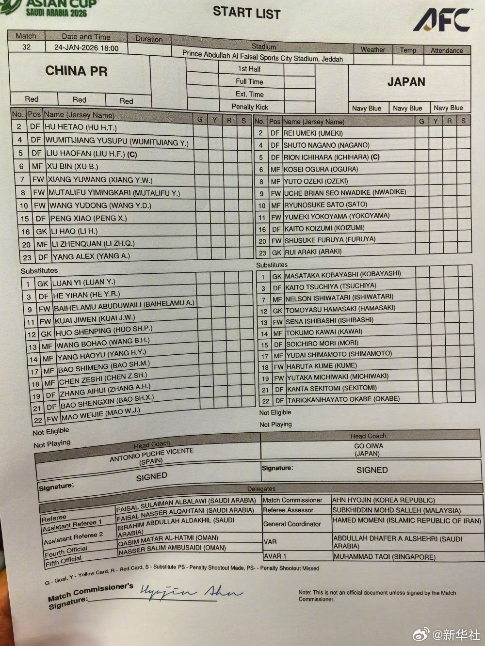 目前雙方本場比賽的首發替補名單已經正式出爐。具體名單如下: