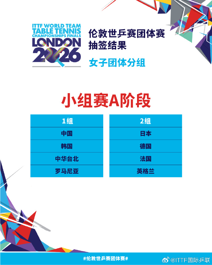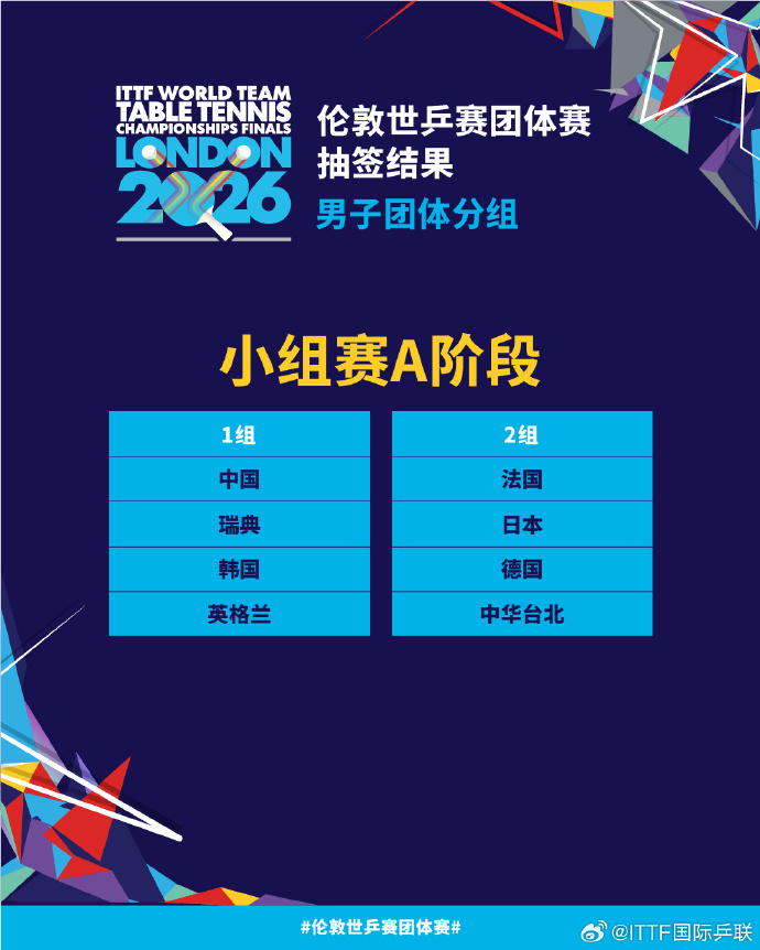 倫敦世乒賽團體賽將於2026年4月28日至5月10日舉行。