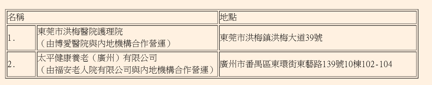 連同現有24家安老院,參加計劃的安老院總數將增至26家,全面覆蓋粵港澳大灣區九個內地城市,為有意於大灣區養老的香港長者提供更多選擇。正在中央輪候冊上輪候資助院舍照顧服務並有意參加計劃的長者可向跟進其服務的負責工作人員提出申請。新增安老院的資料如下: