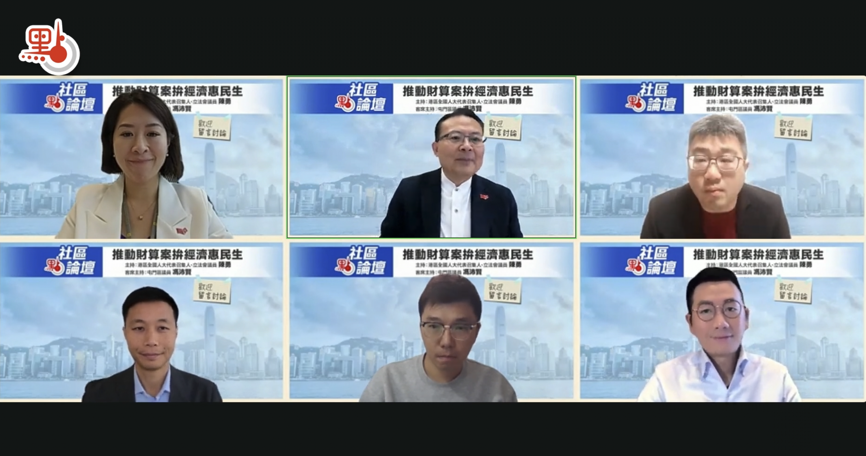 論壇由港區全國人大代表召集人、立法會議員陳勇主持,屯門區議員馮沛賢作客席主持,邀請立法會議員林振昇、立法會議員郭芙蓉、大埔區議員羅曉楓及西貢區議員陳志豪,圍繞新一份財政預算案的編制與公眾諮詢展開深入討論。