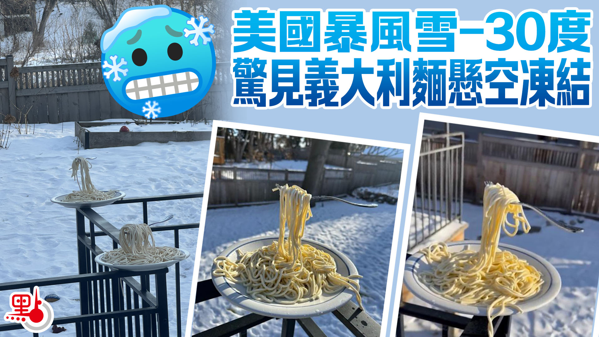 美國暴風雪-30度 驚見義大利麵懸空凍結