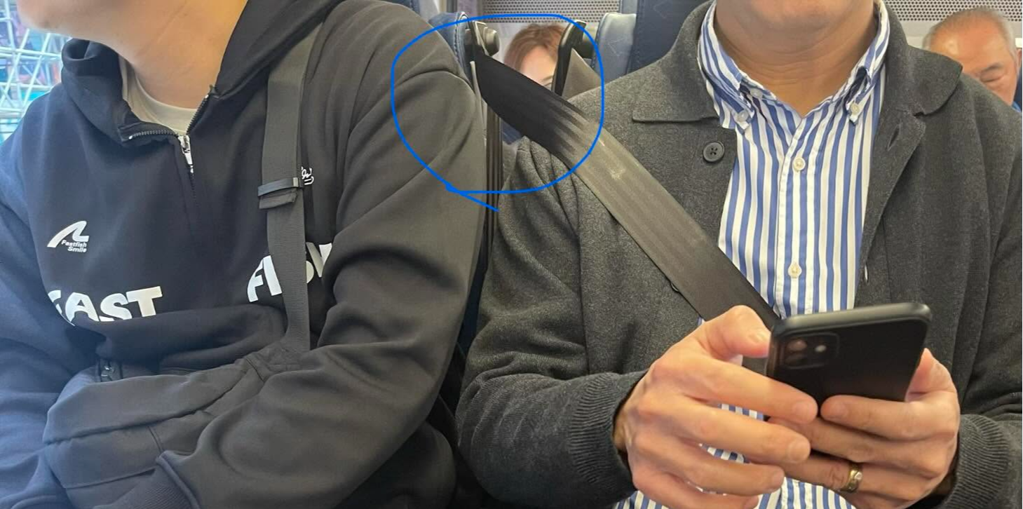 有港女在Threads發文配相,疑乘搭巴士返工時遭鄰座「順手牽羊」扣走安全帶,令她「無帶可扣」,無奈大呻:「阿叔你扣咗我安全帶,我扣乜嘢啊?」由相片中可見,女事主座位上的黑色安全帶被拉至左邊座位,相信被插進了鄰座的扣環中。事主相信阿叔不是有心,有人獻計「叫司機停車先」,她就表示「唔好阻住大家返工」。