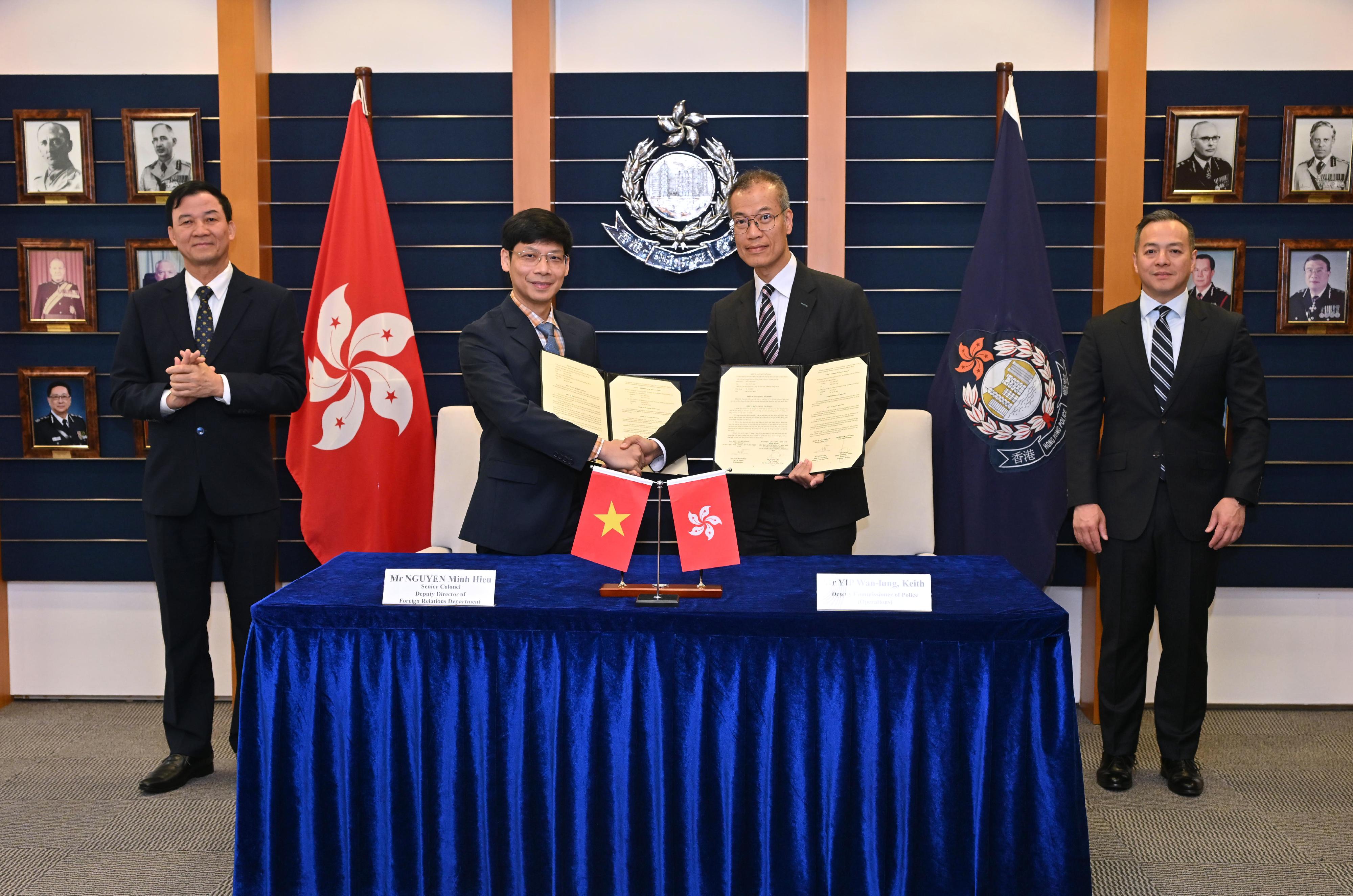 諒解備忘錄在警務處處長周一鳴和越南公安部調查警察辦公室主任陳明進中將見證下,由警務處副處長(行動)葉雲龍與越南公安部外事局副局長阮明孝大校簽署。