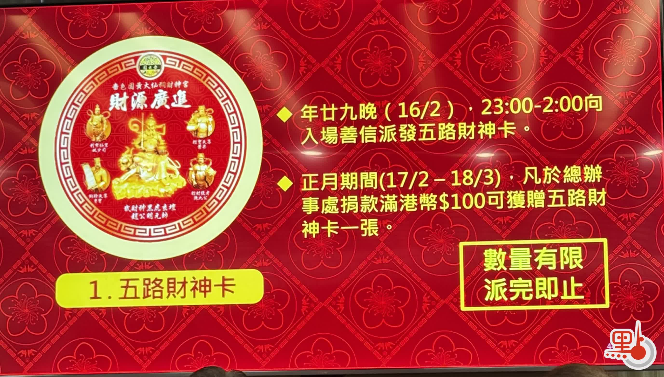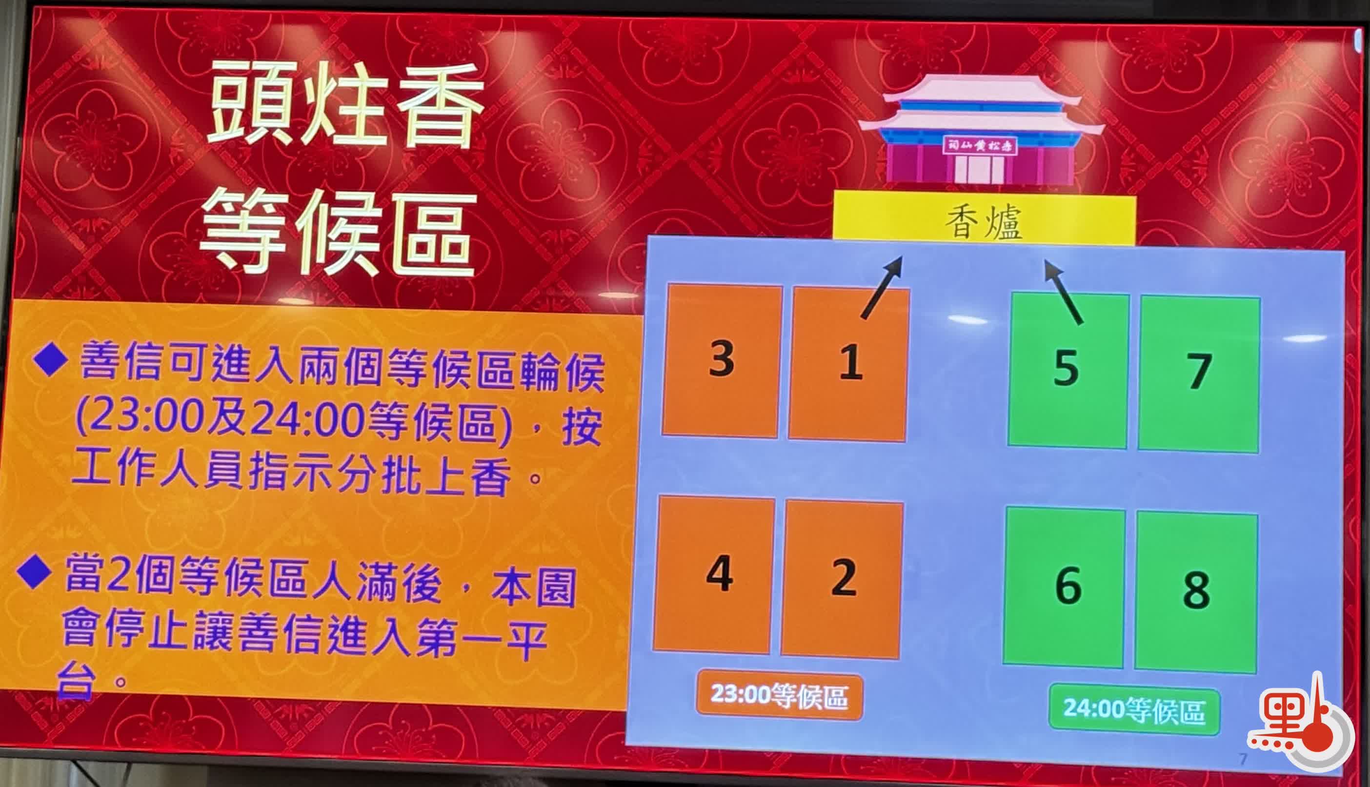 · 年廿九(2月16日):07:30 - 16:30;21:00 - 翌日00:00(頭炷香時段)