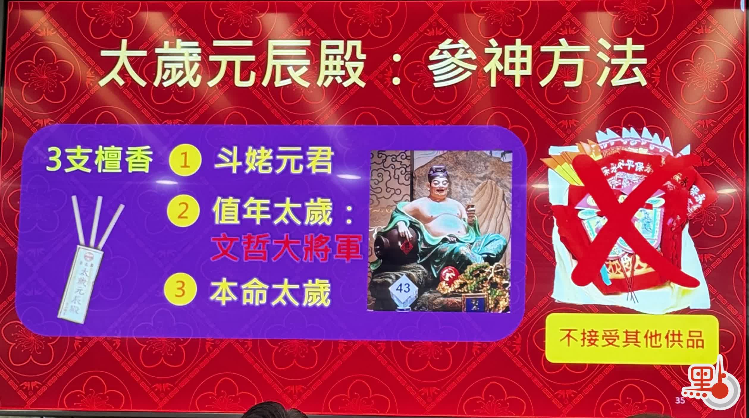 太歲元辰殿:正月初二(2月18日)起開放,時間為08:00-17:00(年廿九及初一暫停開放)。