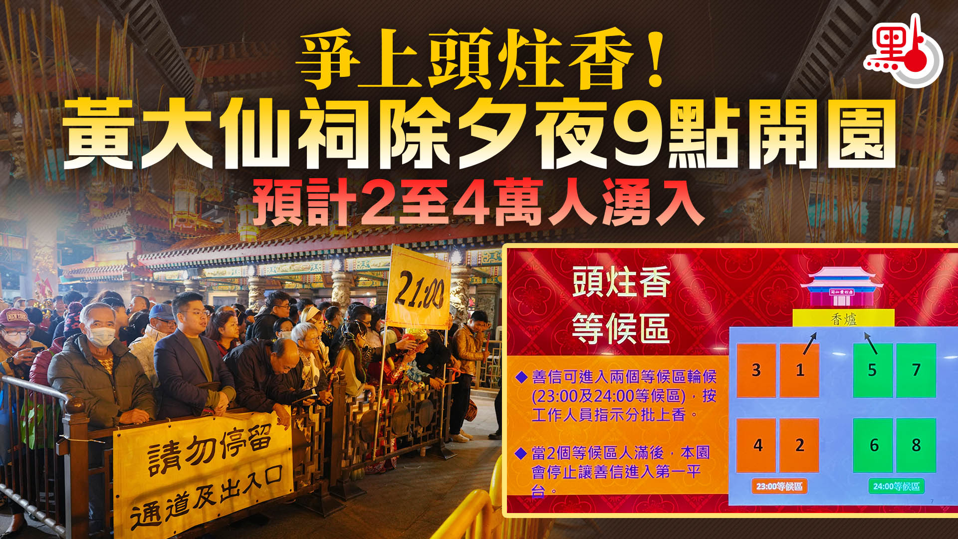 爭上頭炷香!黃大仙祠除夕夜9點開園 預計2至4萬人湧入