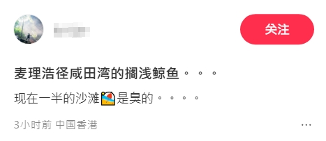 鹹田灣為熱門露營及遠足地點,事件引起不少遊客駐足拍照,相關內容亦被上傳至社交平台「小紅書」。有遊客表示「現在一半的沙灘是臭的」。