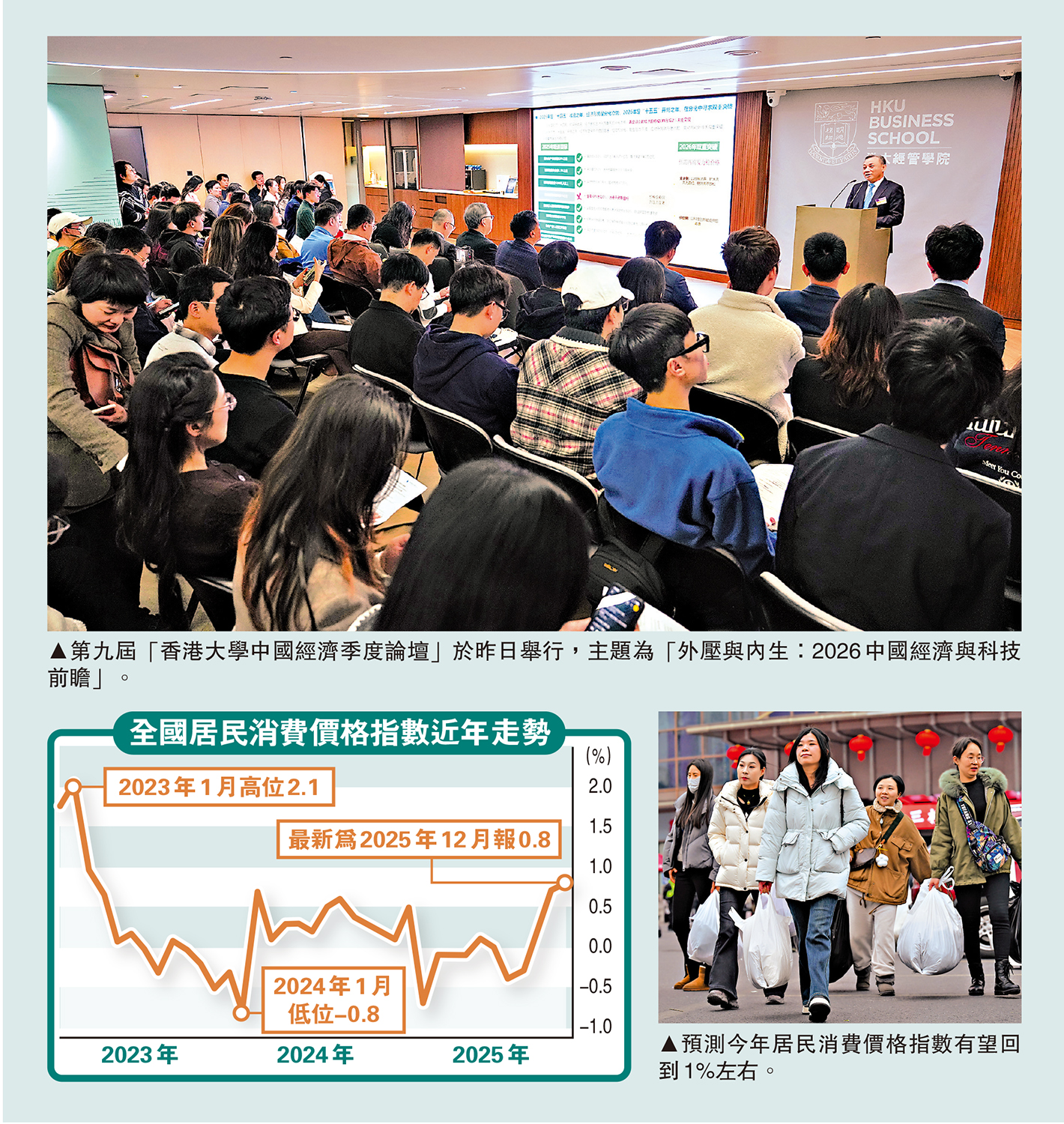 至於中國經濟如何提振內需,陸挺對物價回升持相對樂觀態度,預測2026年居民消費價格指數(CPI)有望回到1%左右,工業生產者出廠價格指數(PPI)亦有望結束連續三年的負增長。主因基數效應及部分國際大宗商品價格企穩。