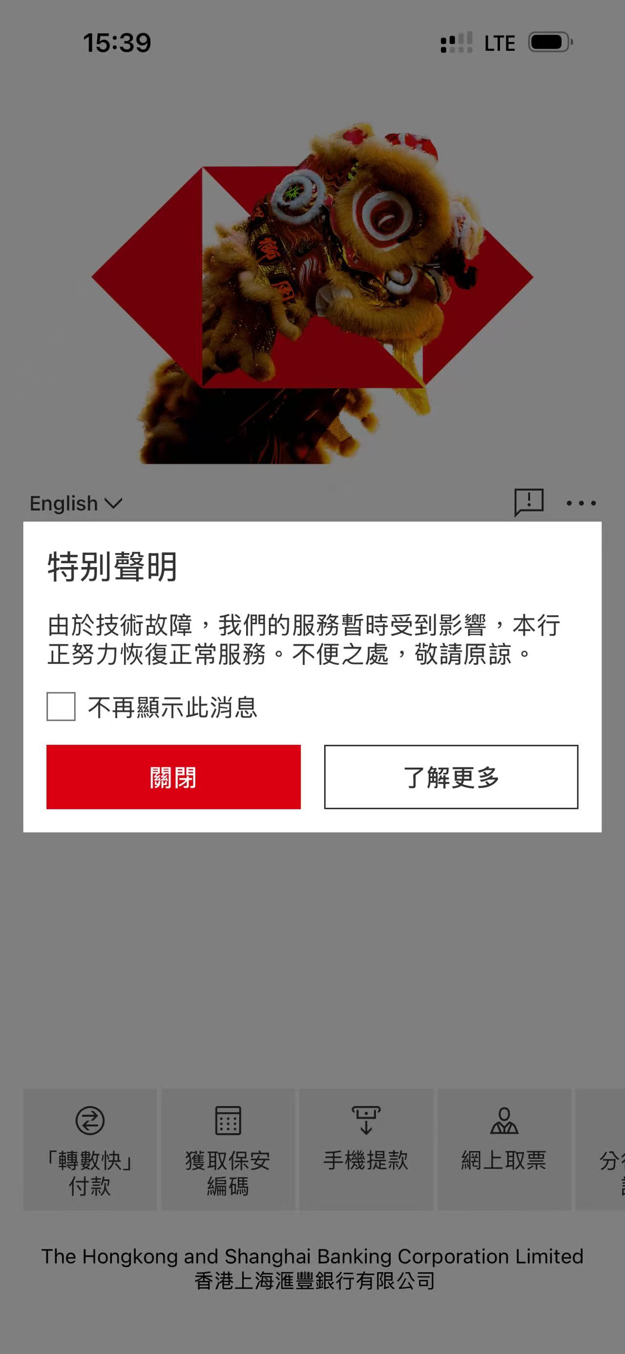 點新聞記者下午3時39分登入該應用程式,發現滙豐銀行發布特別聲明指,「由於技術故障,我們的服務暫時受到影響,本行正努力恢復正常服務。不便之處,敬請原諒。」