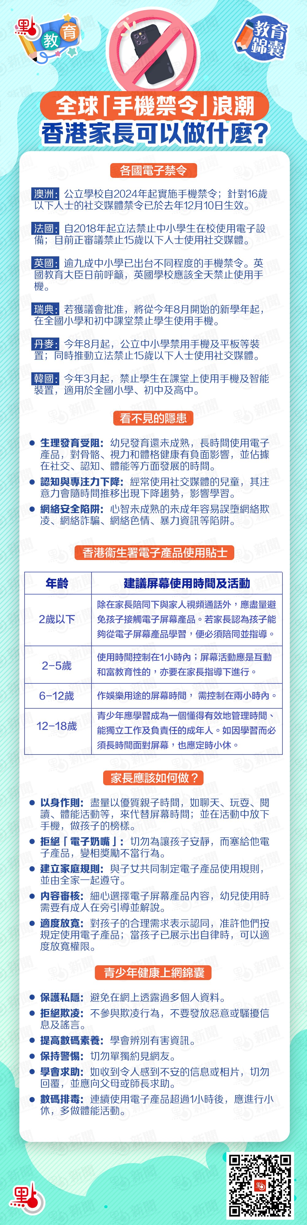 【點新聞報道】青少年「機不離手」已成全球教育界的頭號難題,多國政府紛紛頒布禁令,為未成年使用手機或社媒設下限制,挽救下一代的健康。針對全球青少年對網絡及社媒成癮愈發嚴重的情況,香港家長可以做些什麼?