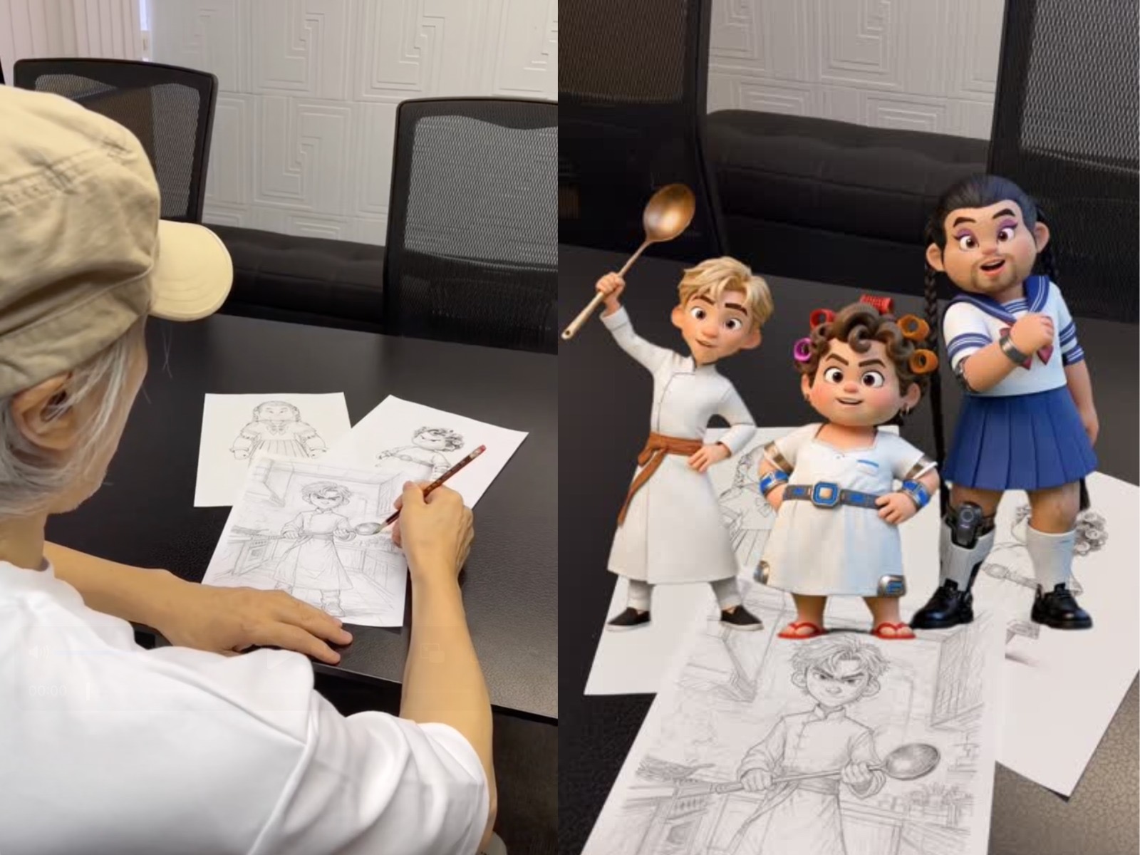 【點新聞報道】周星馳(星爺)公司官方抖音「九五二七劇場」近日上傳一段短視頻,周星馳畫出形象食神周、包租婆與如花妹,同時呼籲大家參與共創內容。