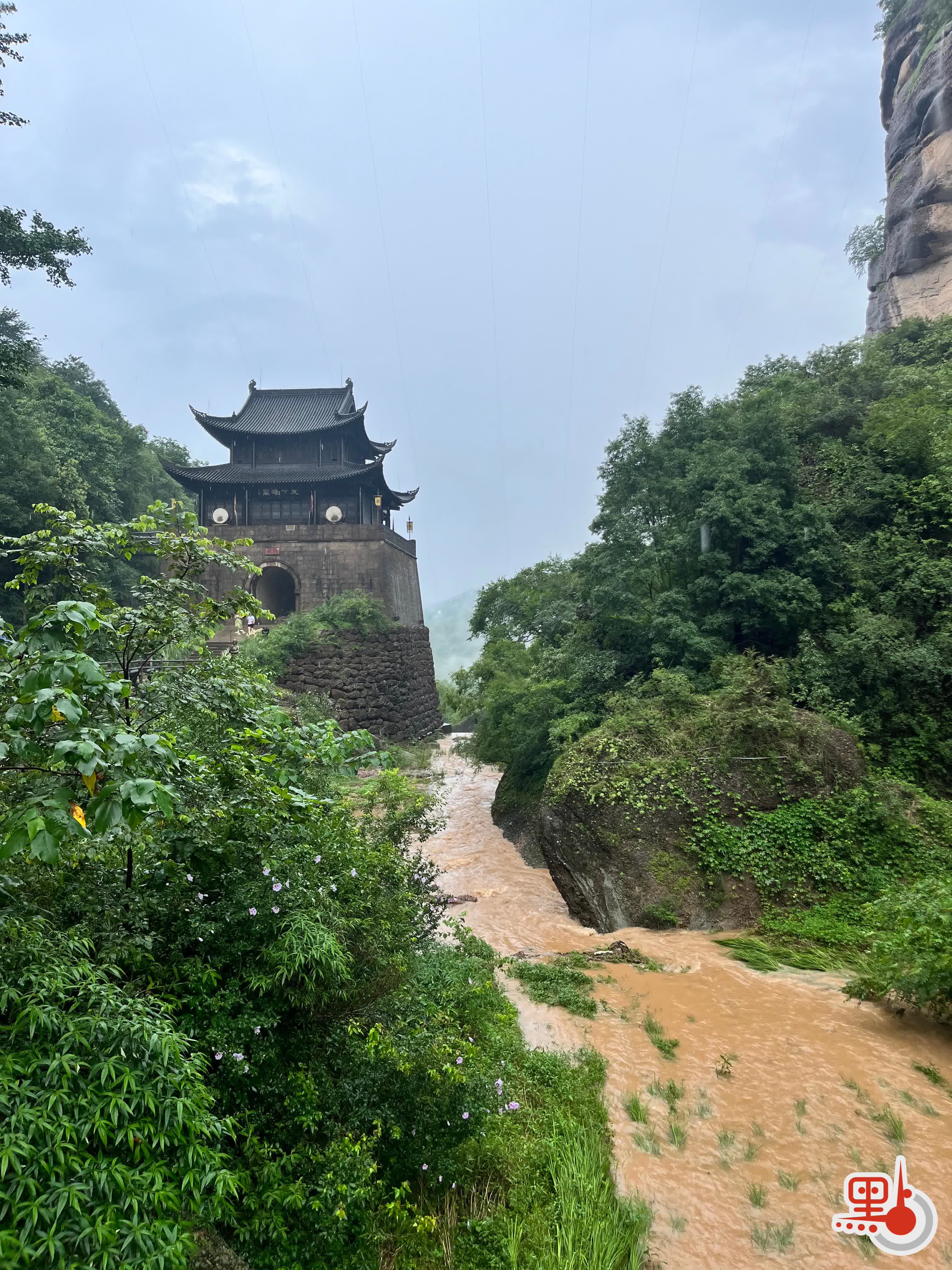 驚魂甫定,懼意卻未消散。大雨滂沱,擔心還會有碎石飛落,此地斷不可久留,我立刻收拾撤離,迅速向山下退軍。回程經過來時的那條山澗,雨水一催,發現它已變成了濁浪翻滾的急流,水位亦漲了不少。走在這樣的天氣裏,不禁讓我更加感慨古人行軍的艱辛。回首石筍峰,雨後的輪廓更顯陡峭,所謂「由來征戰地,不見有人還」,李白這首關山月此刻讀來格外貼切。劍門山川之險、之峻、之雄、之偉,確實擔當得了「一夫當關,萬夫莫開」之名。