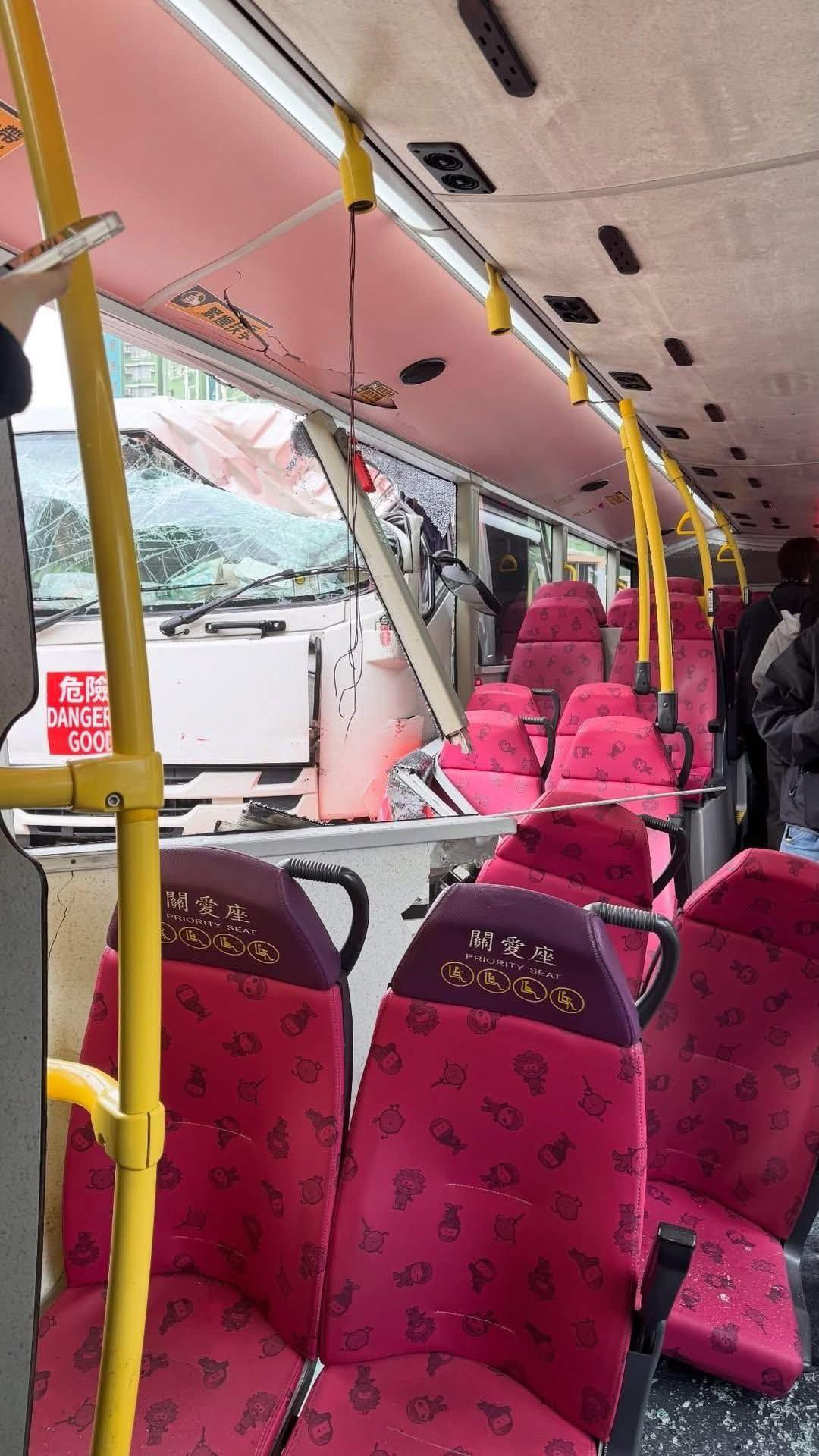 從網上流傳的現場相片可見,巴士右側車身遭運油車撞至凹陷,玻璃窗完全碎裂,車身及窗框嚴重變形,其中一段鐵枝向外凸出,狀似利劍,直指關愛座後方的座位。有網民表示,若事故發生時該座位有乘客,後果恐不堪設想。