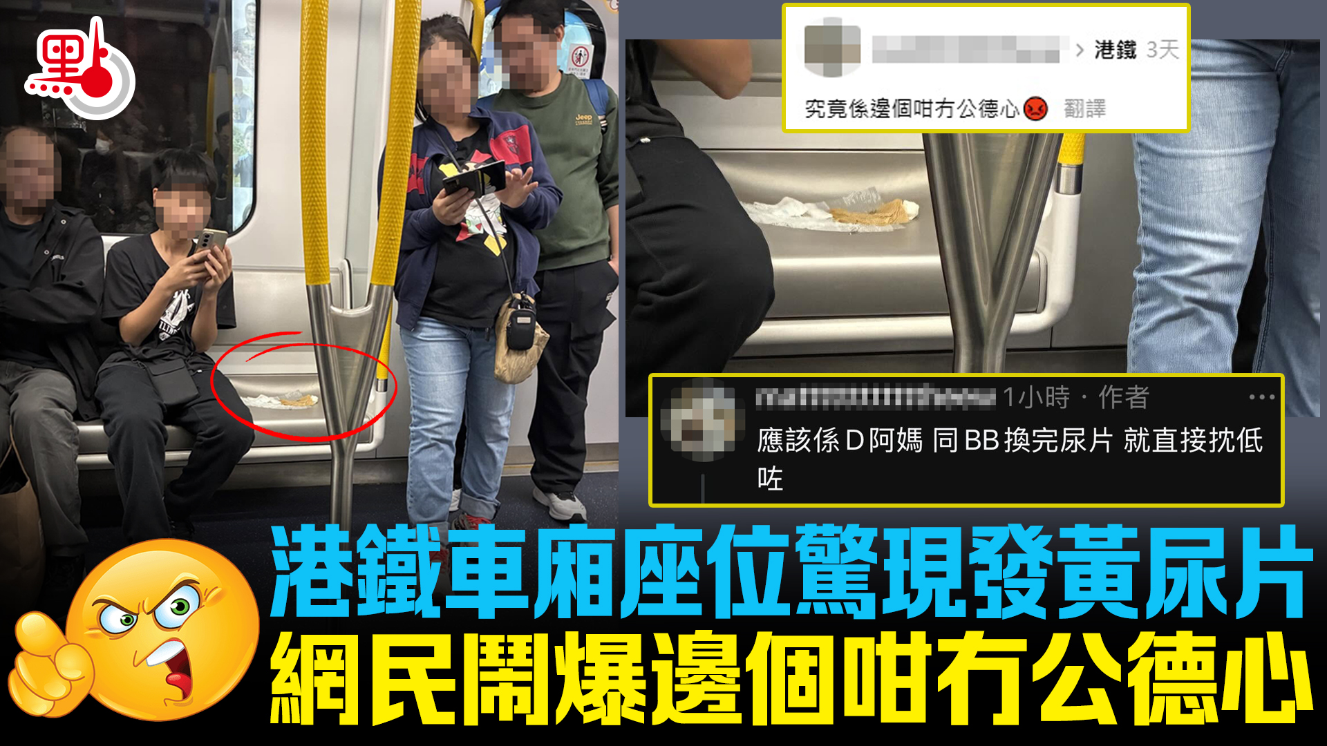 港鐵車廂座位驚現發黃尿片 網民鬧爆邊個咁冇公德心
