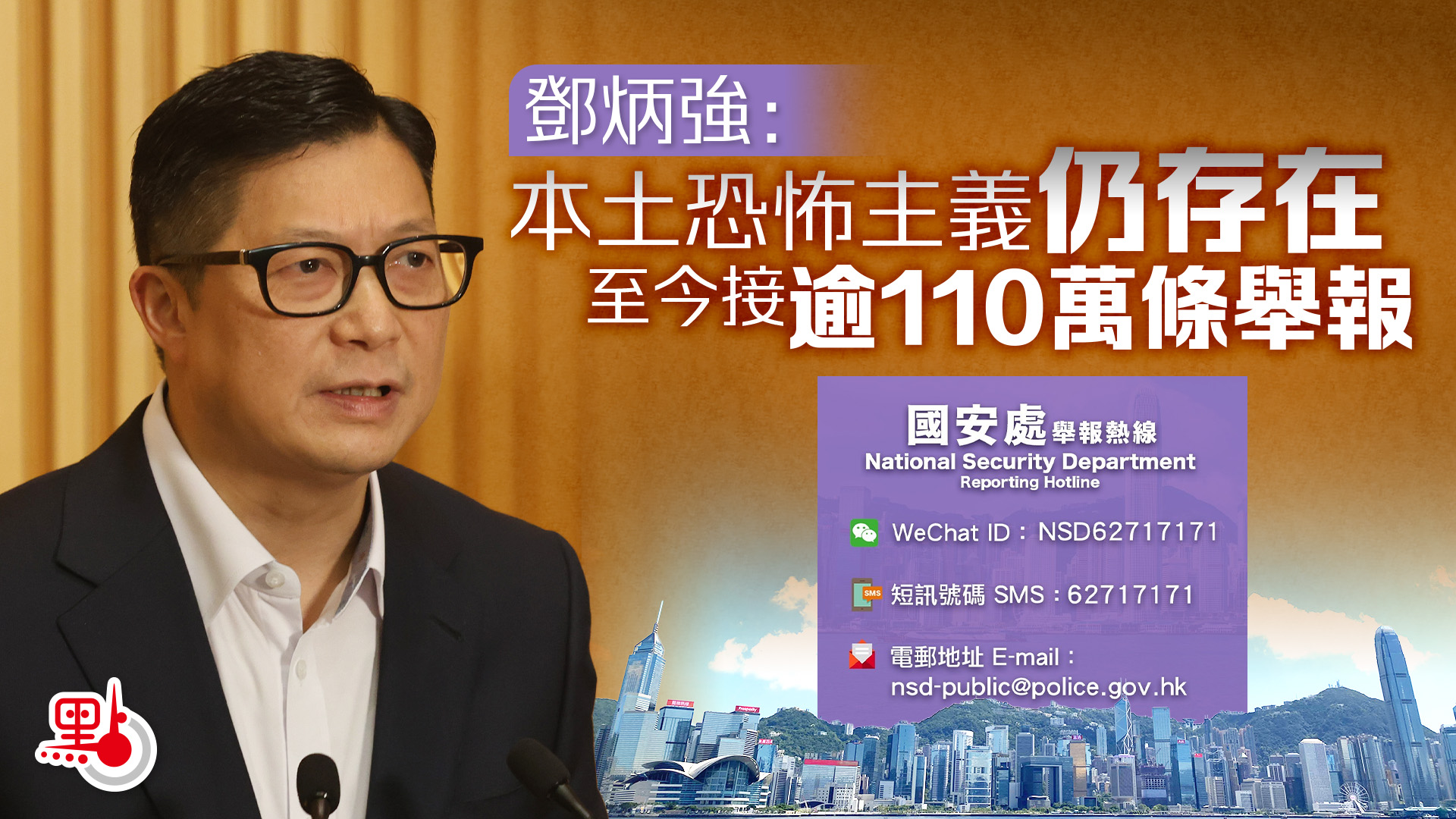 鄧炳強:本土恐怖主義仍存在 至今接逾110萬條舉報