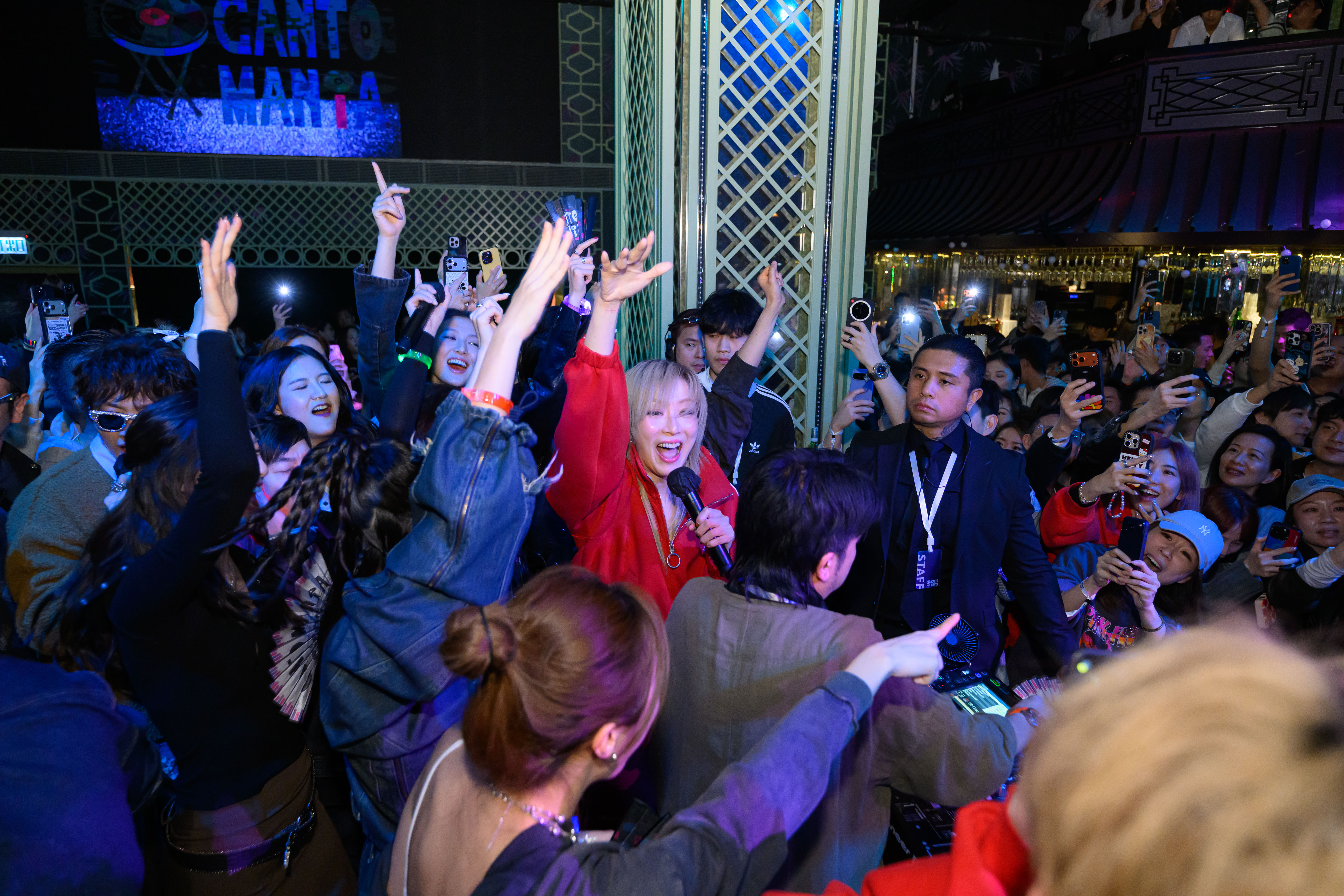【點新聞報道】《夜王》宣傳攻勢招招新奇,有見近日CantonPop在各大夜場再領風騷,鄭秀文(Sammi)的一系列經典快歌更是熱播首選,天后本尊登場,肯定帶來核彈級震撼效果。周六(1月31日)導演吳煒倫、Sammi率領廖子妤、楊偉倫、何啟華、楊偲泳、譚旻萱、李芯駖、林熙彤、鄧麗英、趙君瑜、周芷慧、王紫影、蔡蕙琪、黎紀君、廖穎琛突襲式快閃Cantomania,全場頓時驚呼狂叫。