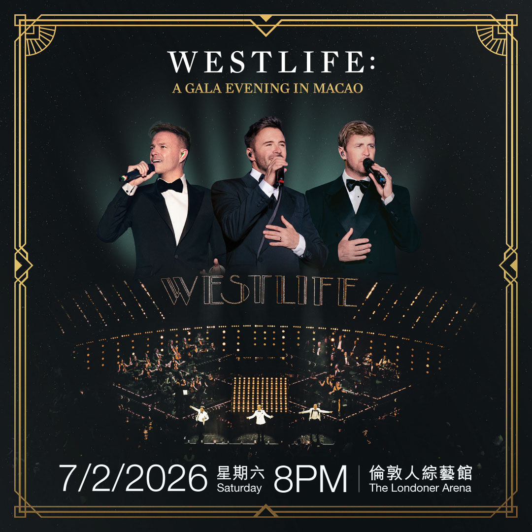【點新聞報道】傳奇天團Westlife成立25周年,將於2月7日攜手澳門樂團空降倫敦人綜藝館,呈現《WESTLIFE: A GALA EVENING IN MACAO》,帶來前所未有的視聽盛宴。澳門倫敦人近日驚喜推出粉絲福利,現只需要簡單完成三個步驟,即抽取1位幸運兒贏取免費門票2張!