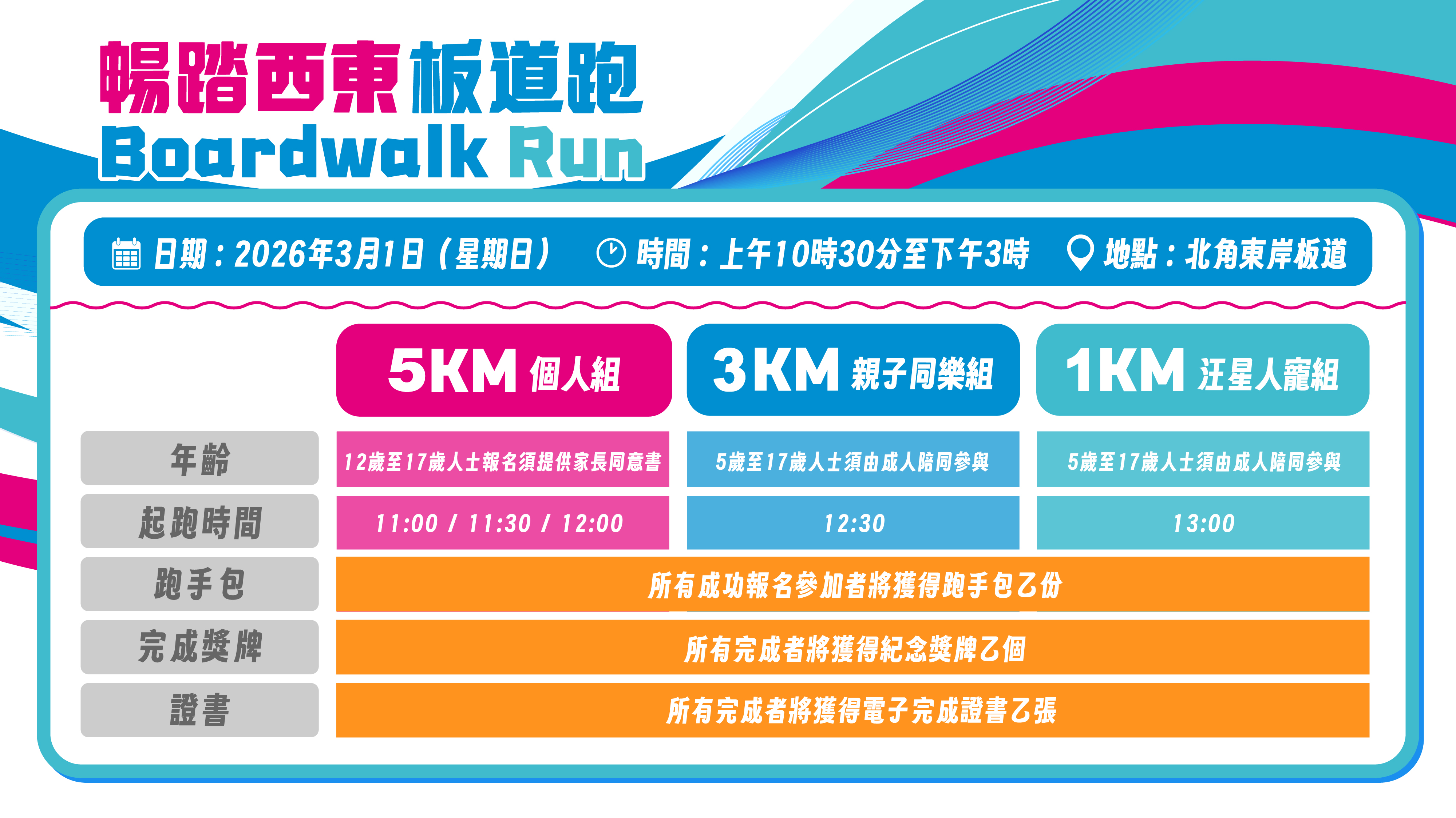 暢踏西東板道跑今起免費報名 設毛孩1km組+Busking+小食攤位