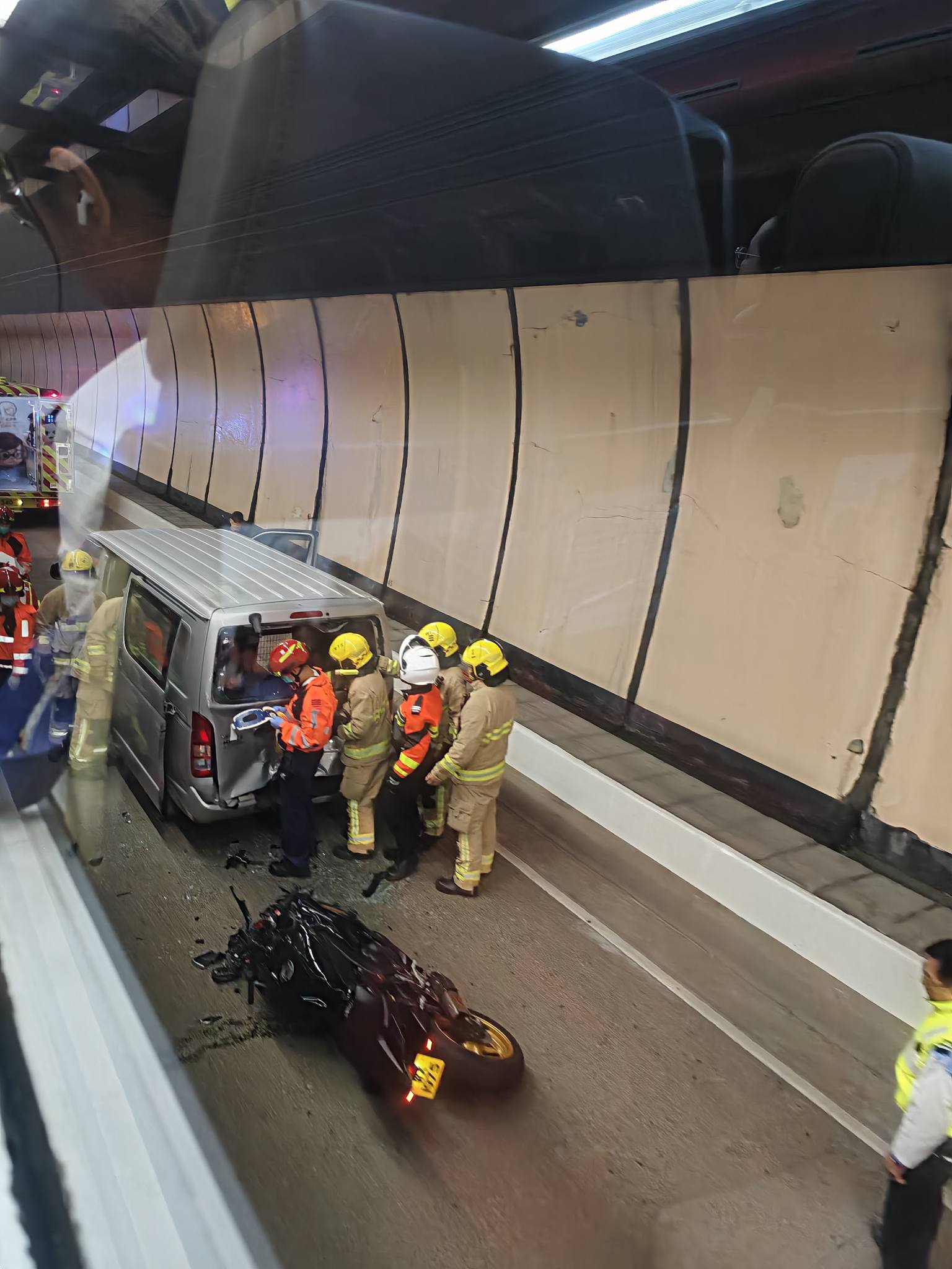 (有片)事發一刻!大老山隧道電單車硬撼貨Van 鐵騎士倒豎葱直插車尾廂
