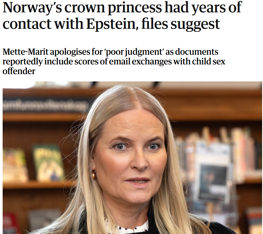 瑪麗特2月1日發表聲明,表示對與愛潑斯坦的接觸「感到後悔」,並稱自己「當時判斷失誤,令人難堪」。法新社則稱,這對挪威王室來說是個糟糕的消息,因瑪麗特的兒子霍伊比將於周二在奧斯陸地方法院出庭受審,他被指控38項罪名,包括強姦4名婦女以及襲擊和毒品罪。