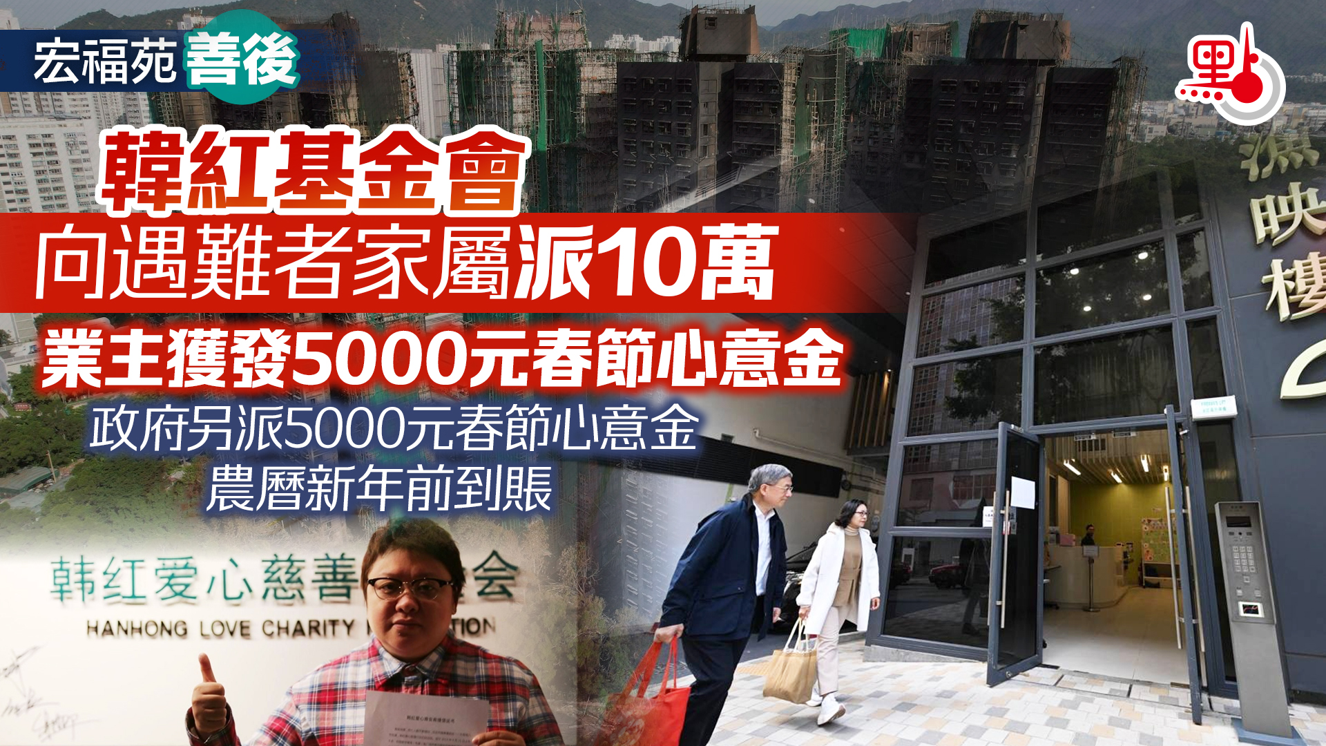 宏福苑善後|韓紅基金會向遇難者家屬派10萬 業主獲發5000元春節心意金
