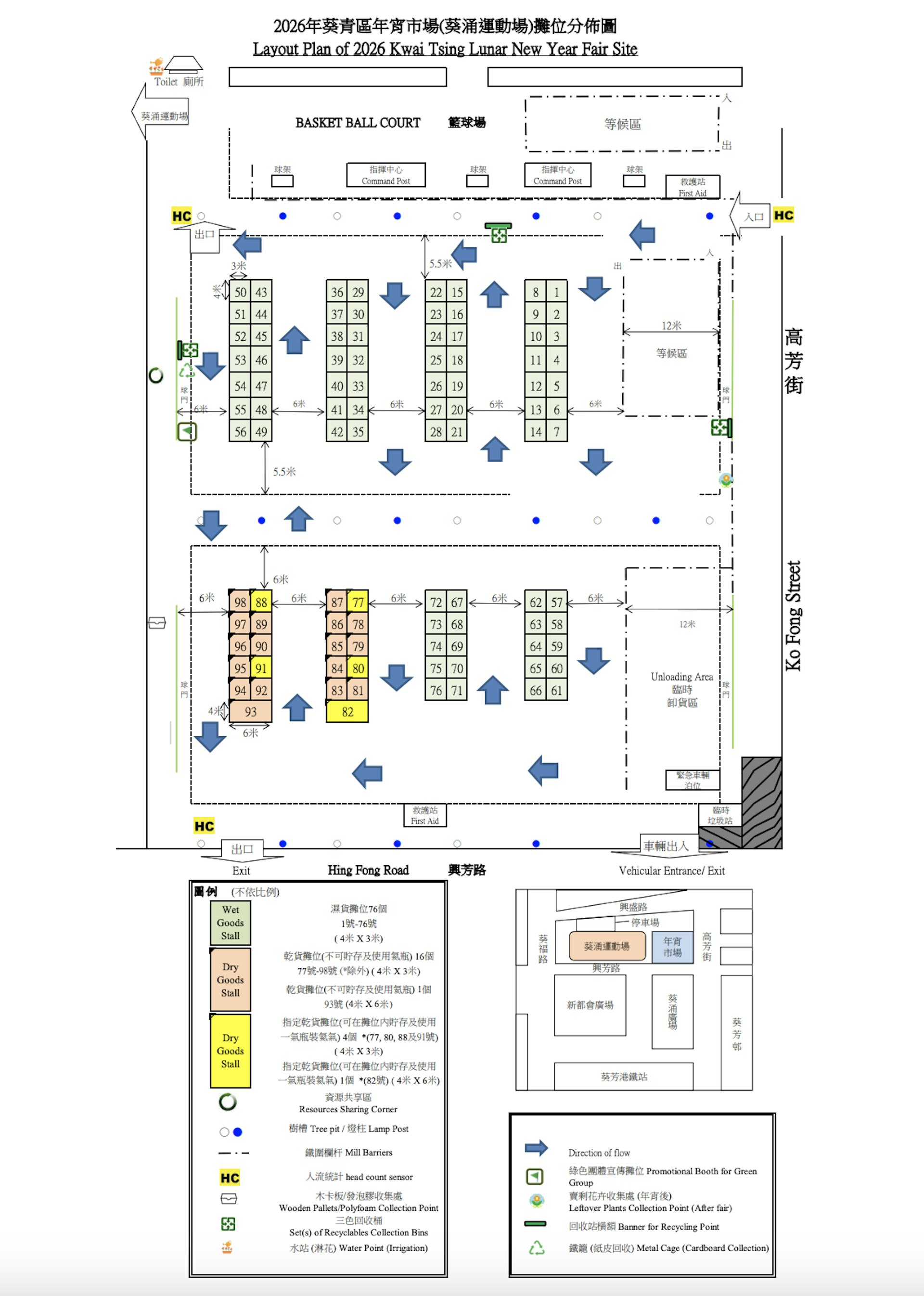特色:戶外足球場中型市集,售賣春聯、燈籠、生肖飾品等,價格實惠且富街坊氛圍。