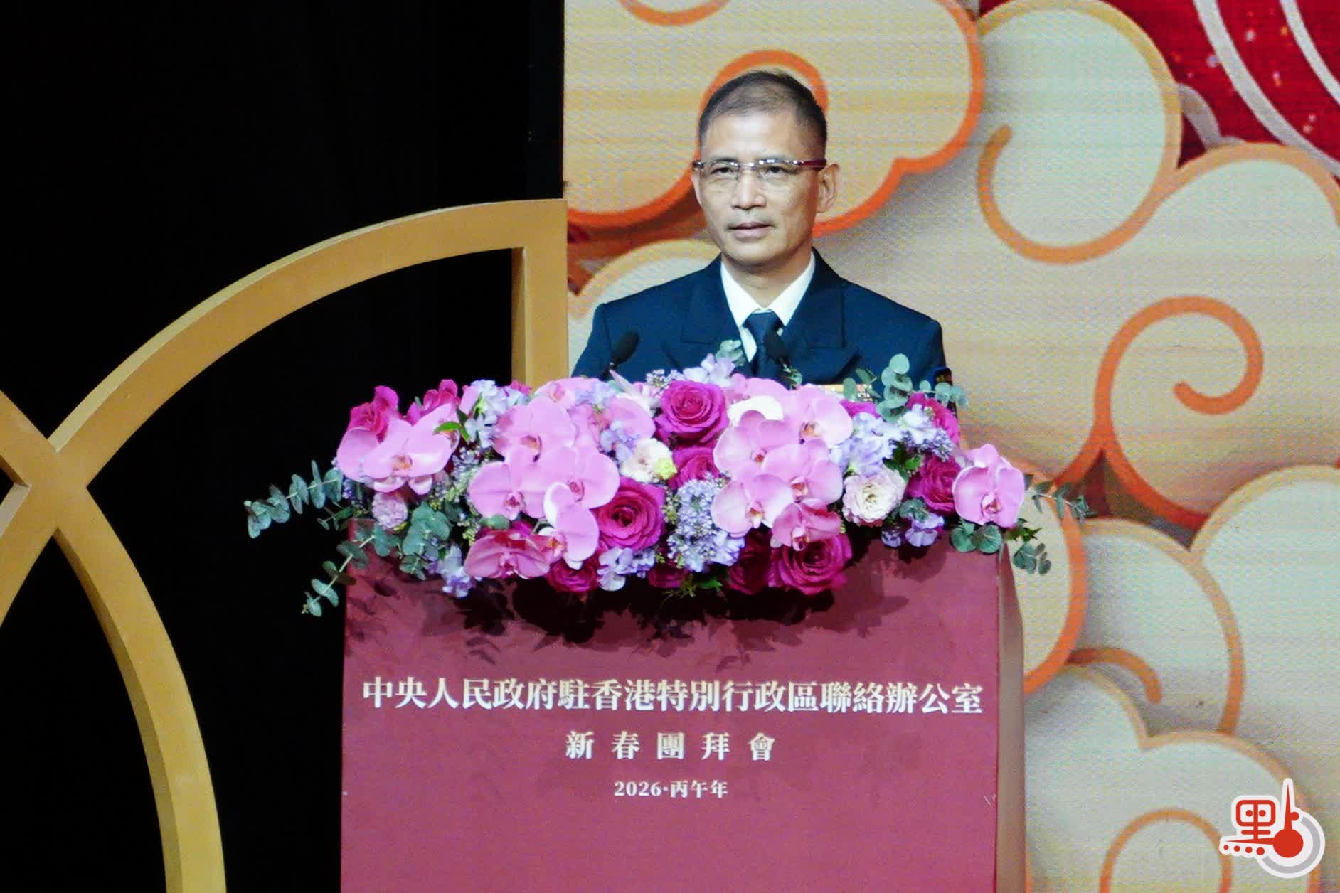 【點新聞報道】中央政府駐港聯絡辦2026年新春團拜會今晚(4日)在香港會議展覽中心大會堂舉辦。中國人民解放軍駐香港部隊副司令員譚志偉致辭時指出,過去一年,在黨中央的堅強領導下、在特區政府的有力帶領下,香港由治及興邁出堅實步伐,國際金融、貿易、航運中心地位持續穩固,第八屆立法會選舉圓滿順利舉行,北都區建設快馬加鞭,民生改善交出亮麗成績,愛國愛港正能量愈發充盈。