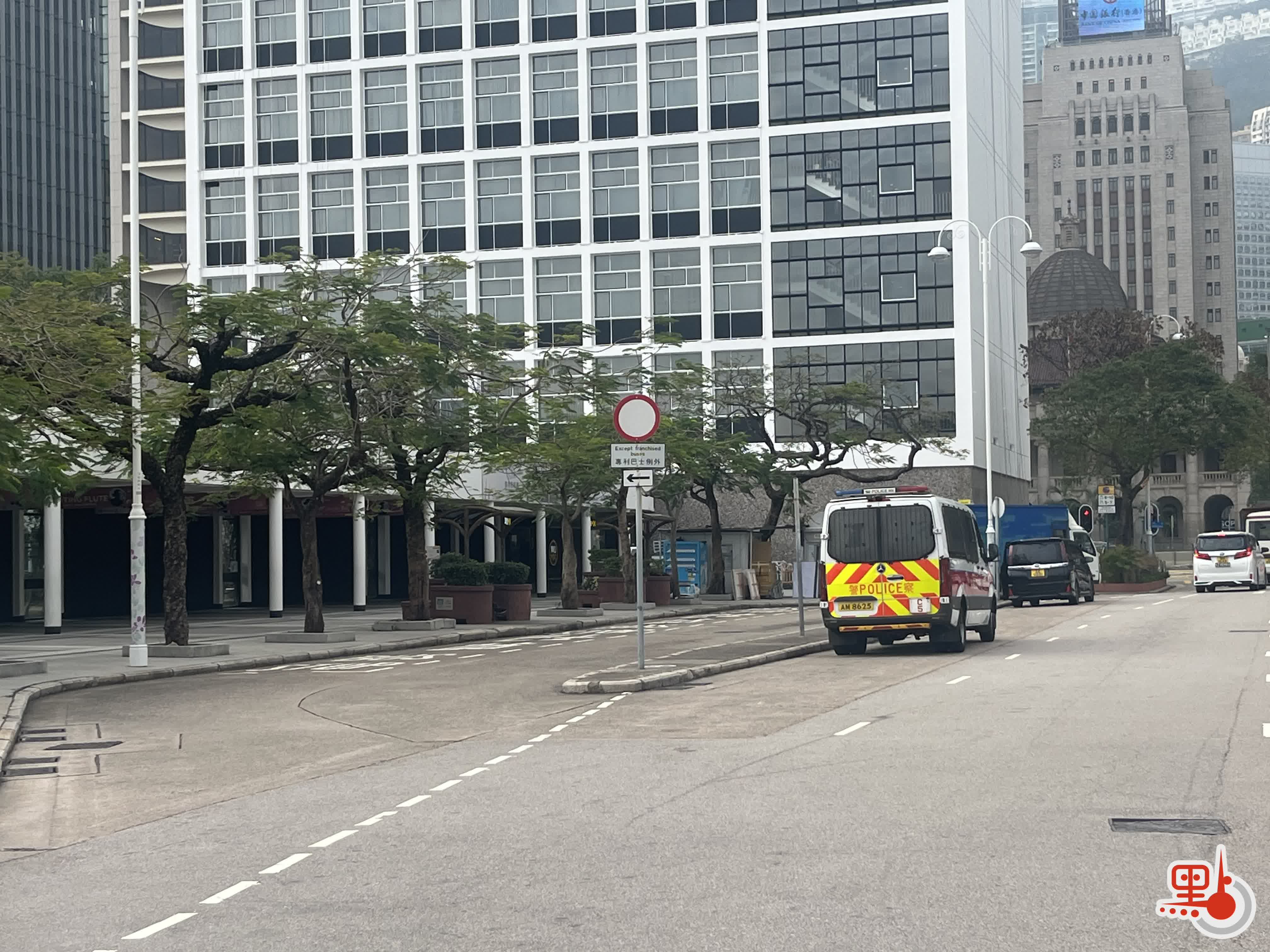點新聞記者見到,在中環愛丁堡廣場,有多輛警車戒備,公眾旁聽現場設有約100個座位,9時50分許接近滿座。展城館三樓多用途廳設有88席供公眾及團體代表旁聽,9時58分時亦幾乎滿座。