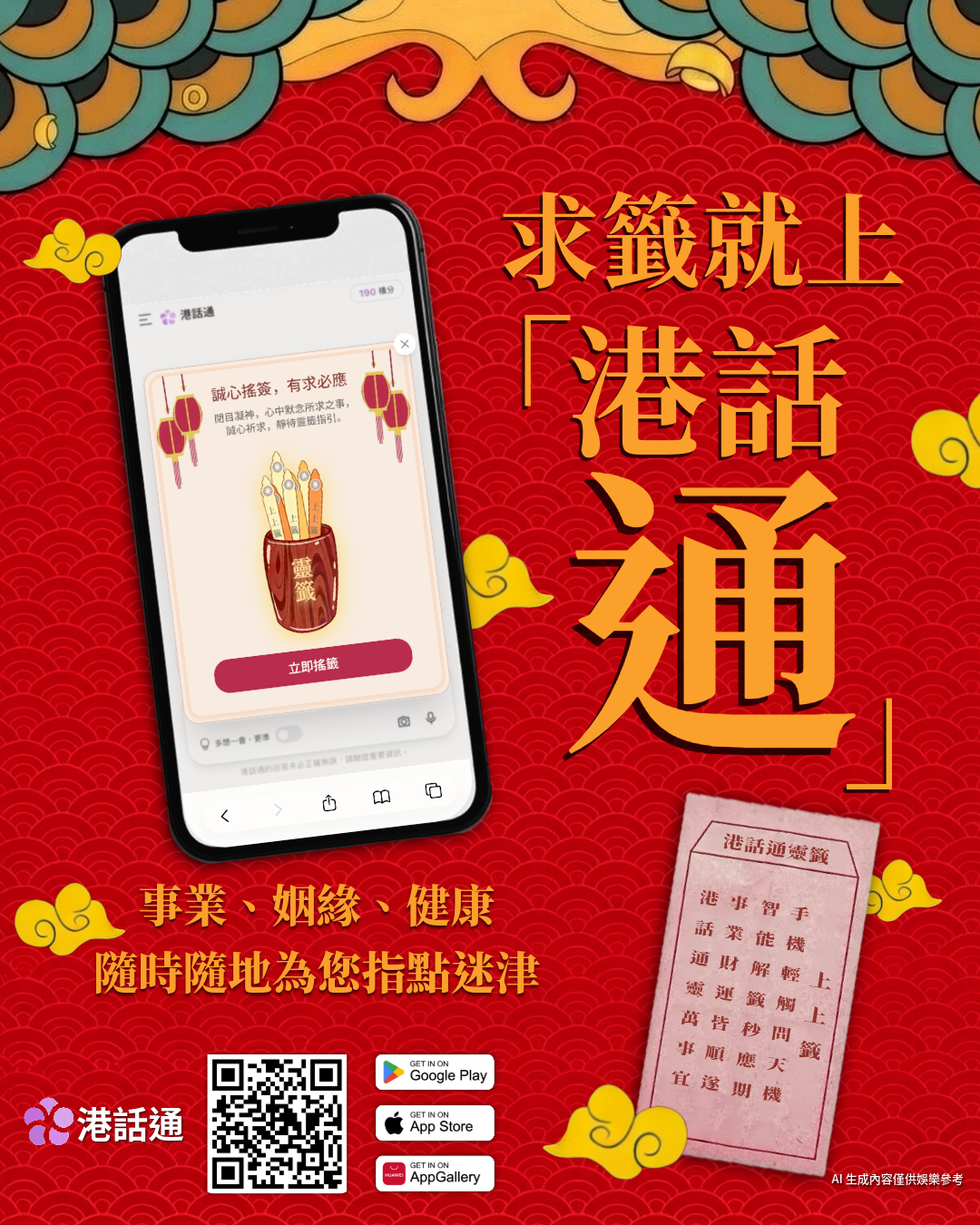 「港話通」推出AI「求籤」 幫你隨時隨地求好籤