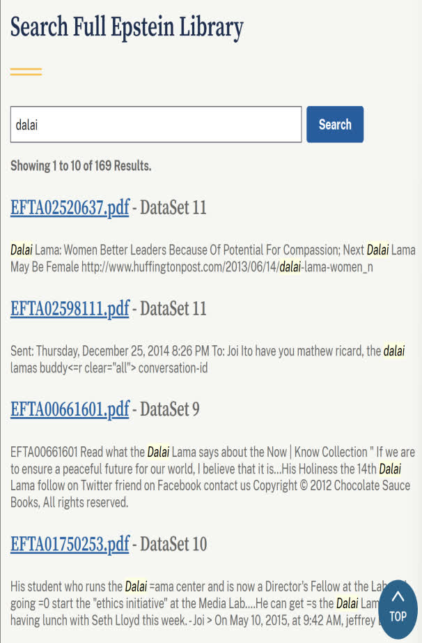 2月2日,印度《金融快報》報道稱,達賴喇嘛曾於2012年與傑弗里·愛潑斯坦會面,在美國司法部新公布的愛潑斯坦電子郵件中,達賴的名字被提及169次。