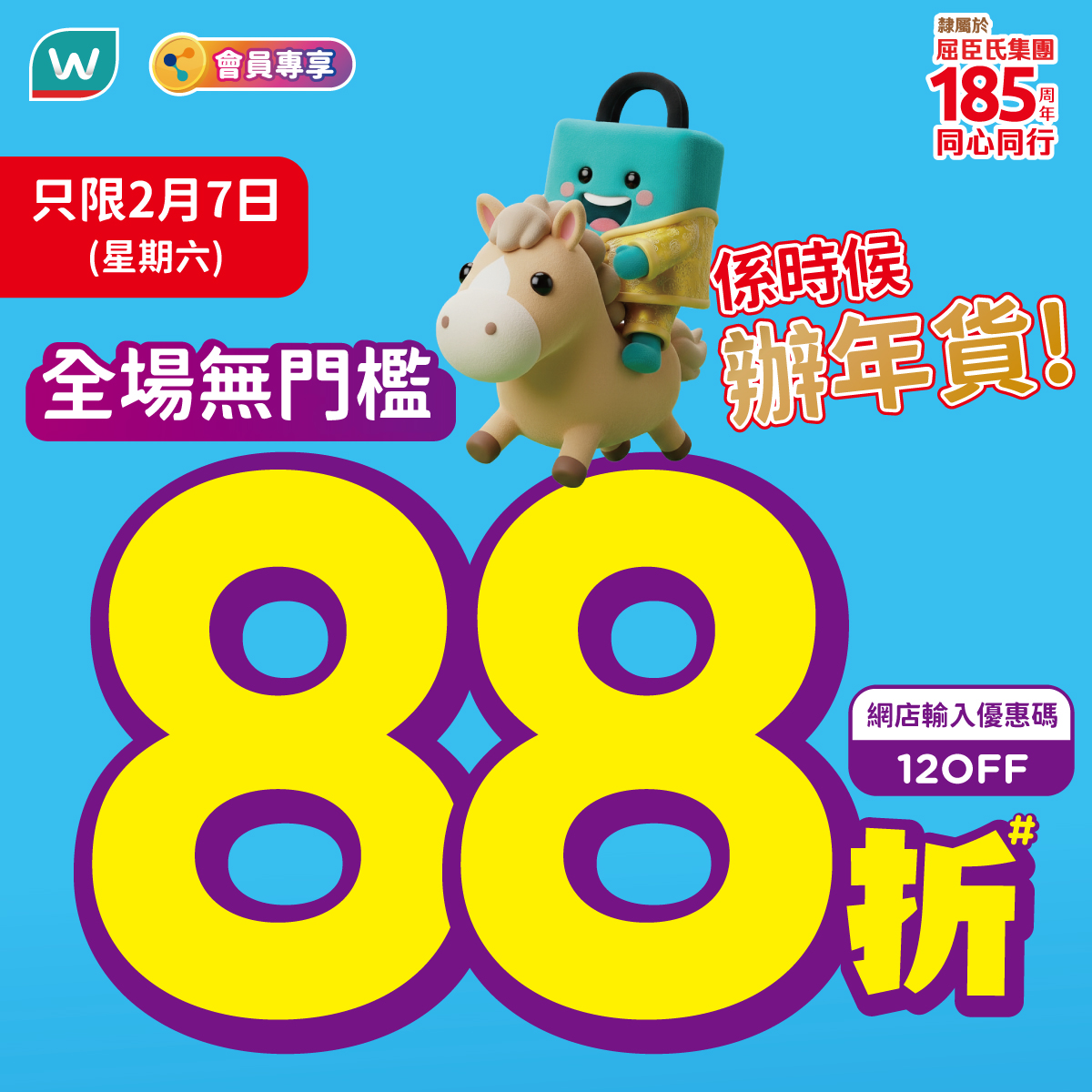網店:2月7至8日(星期六、日)於惠康網店買滿$888,即享88折