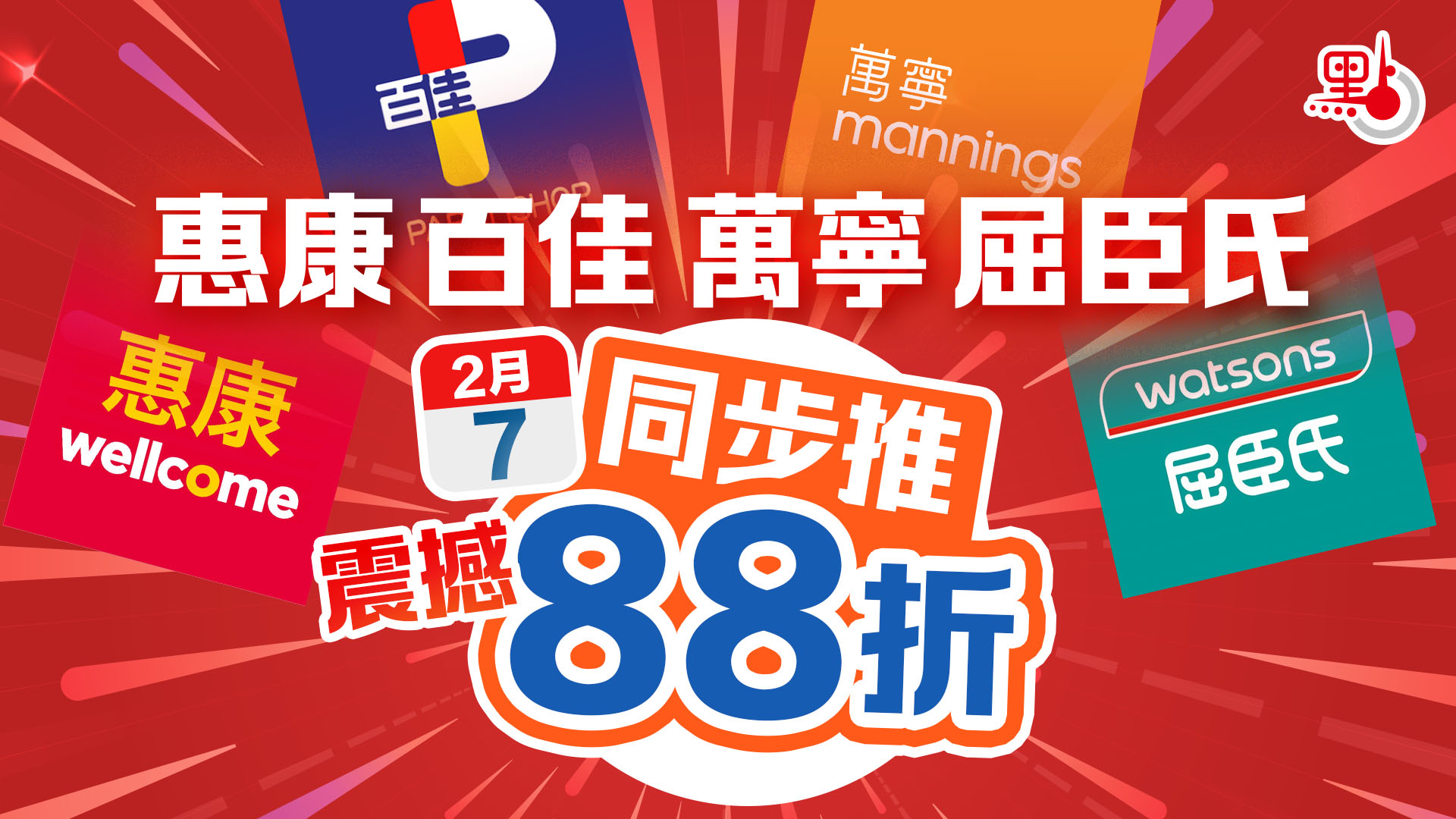 惠康/百佳/萬寧/屈臣氏 今同步推震撼88折
