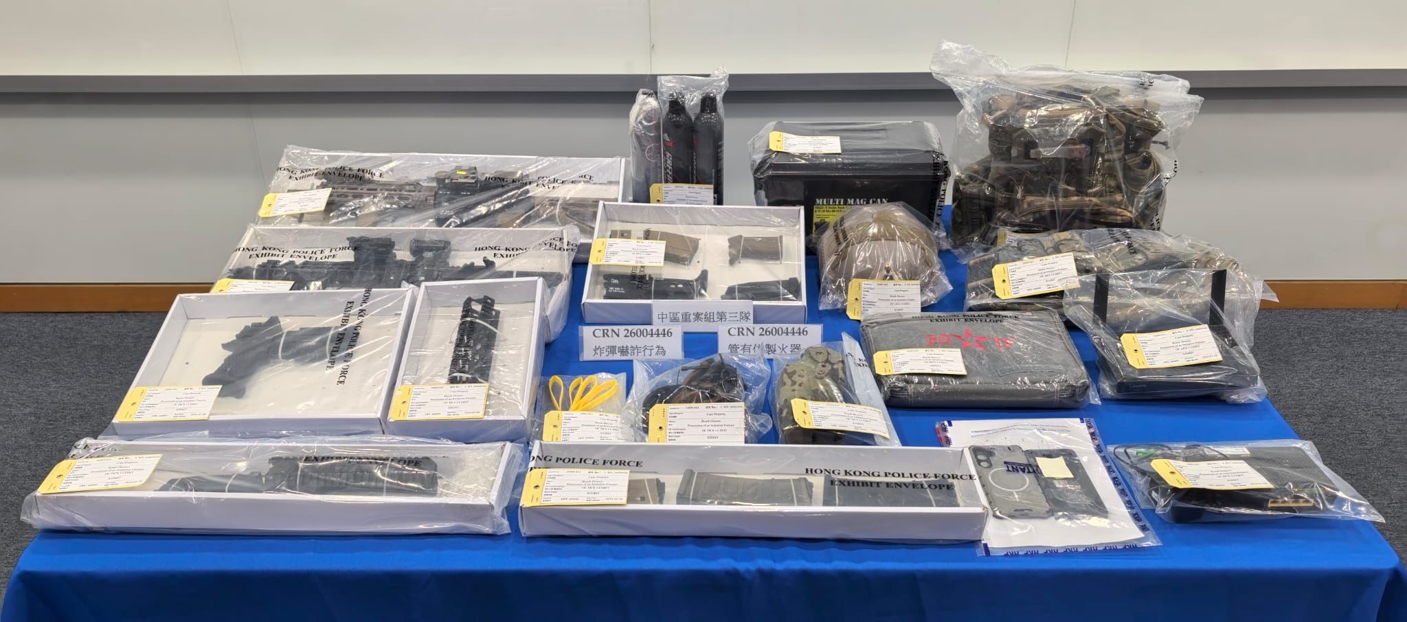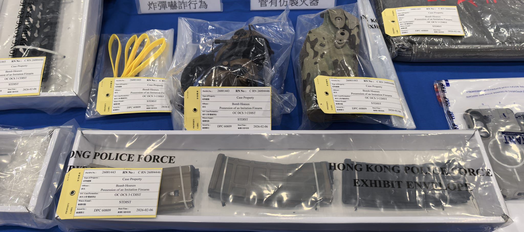 【點新聞報道】警方今日(7日)下午2時召開記者會表示,警方於1月27接報,指有人在線上遊戲群組表示會於農曆年初一在港鐵金鐘站放炸彈,人員經情報分析後鎖定一名疑犯,並在昨日(6日)於沙田區以「炸彈嚇詐」罪拘捕一名31歲本地男子,亦在其住所內搜出3支懷疑仿製槍械。