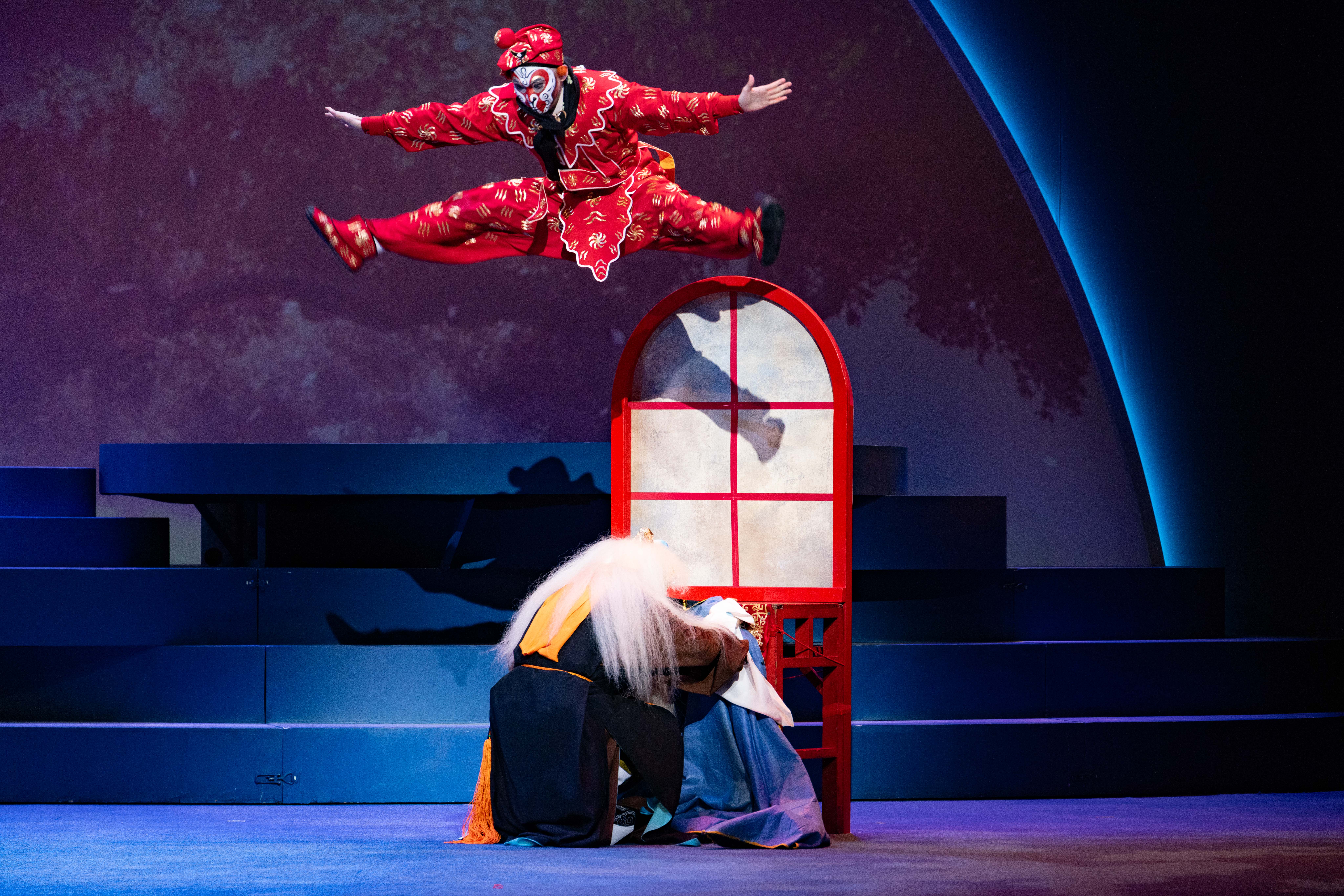 三位齊天大聖聯同一眾猴孫大戰十萬神兵的賓虛場面,作為「武打擔當」的第三代猴王秦朗對身段與動作有超高要求,他翻筋斗時全是真功夫;第二代猴王徐挺芳則是全劇的「功架擔當」,他在《弼馬溫》這埸戲騎着馬跟大家威風見面時贏盡全場掌聲;作為殿堂級「表情擔當」的第一代猴王朱陸豪老師的一舉手一投足、面容神色皆細膩演繹「人猴合一」的至高境界。