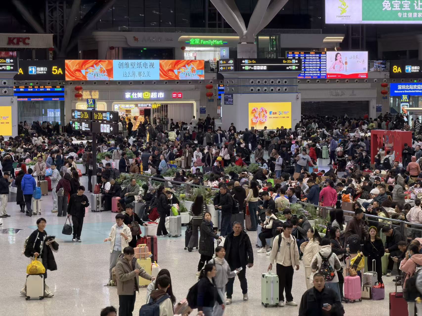 深圳火車站表示,計劃持續加大熱門方向運力投放,節前深圳鐵路預計累計開行夜間高鐵594列,其中,2月9至10日、12至15日0點至6點,深圳北站日均加開往返成都、南昌、長沙、武漢、湛江、潮汕等方向的夜間高鐵78列,福田站日均加開往返桂林、婁底、長沙、懷化等方向高鐵9列。2月9至10日、12至16日0點至6點,深圳站日均加開往返湛江、汕頭、南昌、梅州等方向的夜間高鐵10列,通過加開夜間高鐵,全力保障旅客返鄉過節需求。