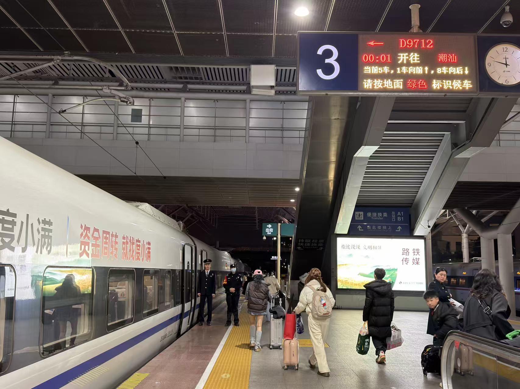 「我是臨時決定帶小孩回老家過年,提前沒有關注購票信息。等想買票的時候,才發現沒票了。這兩天提交了12306候補訂單,突然看到這班夜間高鐵,成功買到車票。」一位帶小孩的旅客開心地說,「凌晨上車,睡一會兒,不耽誤早上陪爸媽吃早飯呢。」