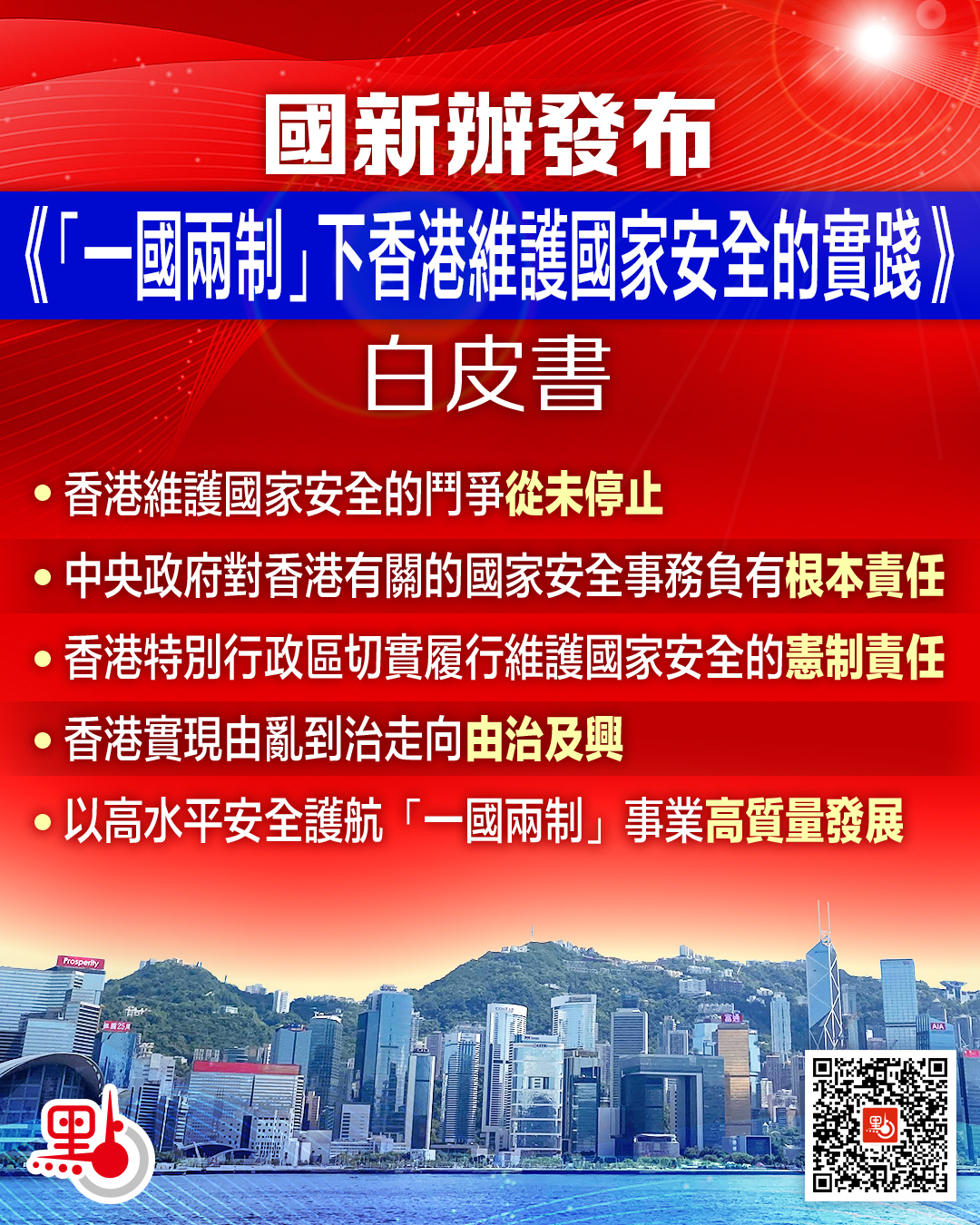 為全面總結香港維護國家安全的實踐歷程和經驗啟示,正本清源、凝聚共識,以高水平安全護航「一國兩制」事業高質量發展,中國政府特發布本白皮書。