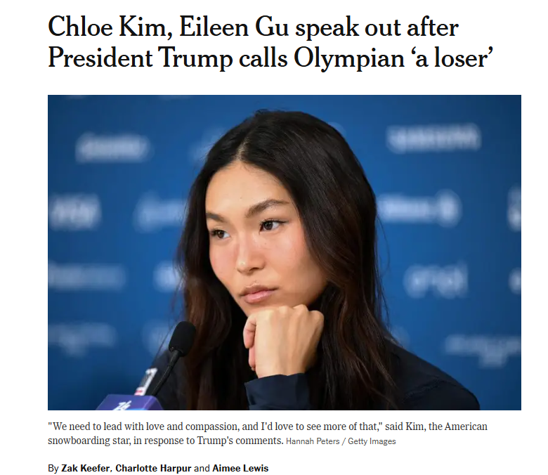2月8日,美國總統特朗普在其社交平台真相社交發文說:「美國奧運滑雪運動員赫斯真是個徹頭徹尾的失敗者(loser),他說他不能代表他的國家參加本屆冬奧會。如果真是這樣,他就不應該去參加選拔,他能入選真是太糟糕了。很難支持這樣的人。」