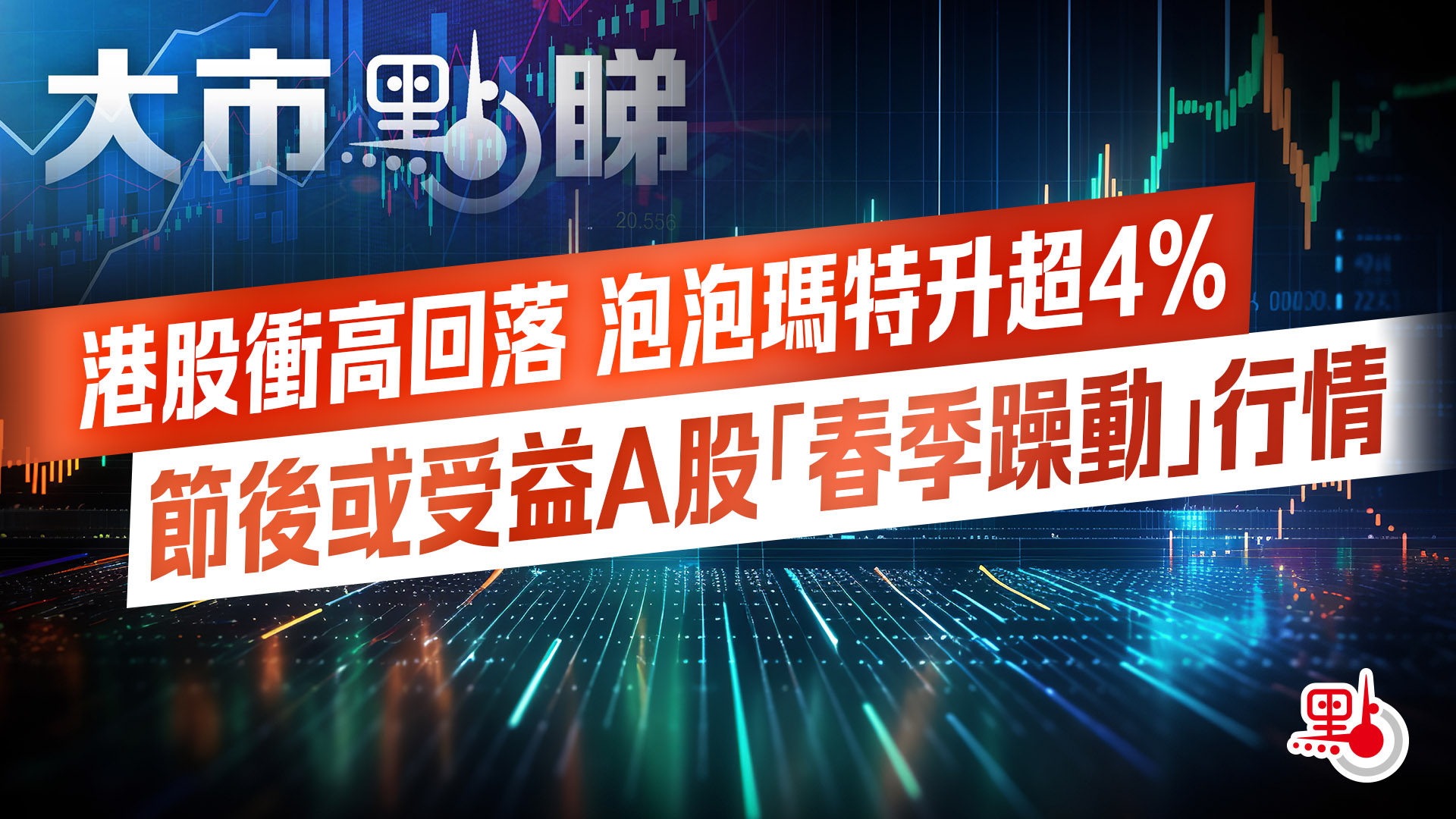 大市點睇|港股衝高回落 泡泡瑪特升超4% 春節後有望受A股帶動上行