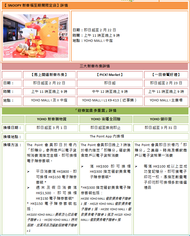 YOHO系商場迎春賀歲呈獻 打卡/購物/消費賞驚喜