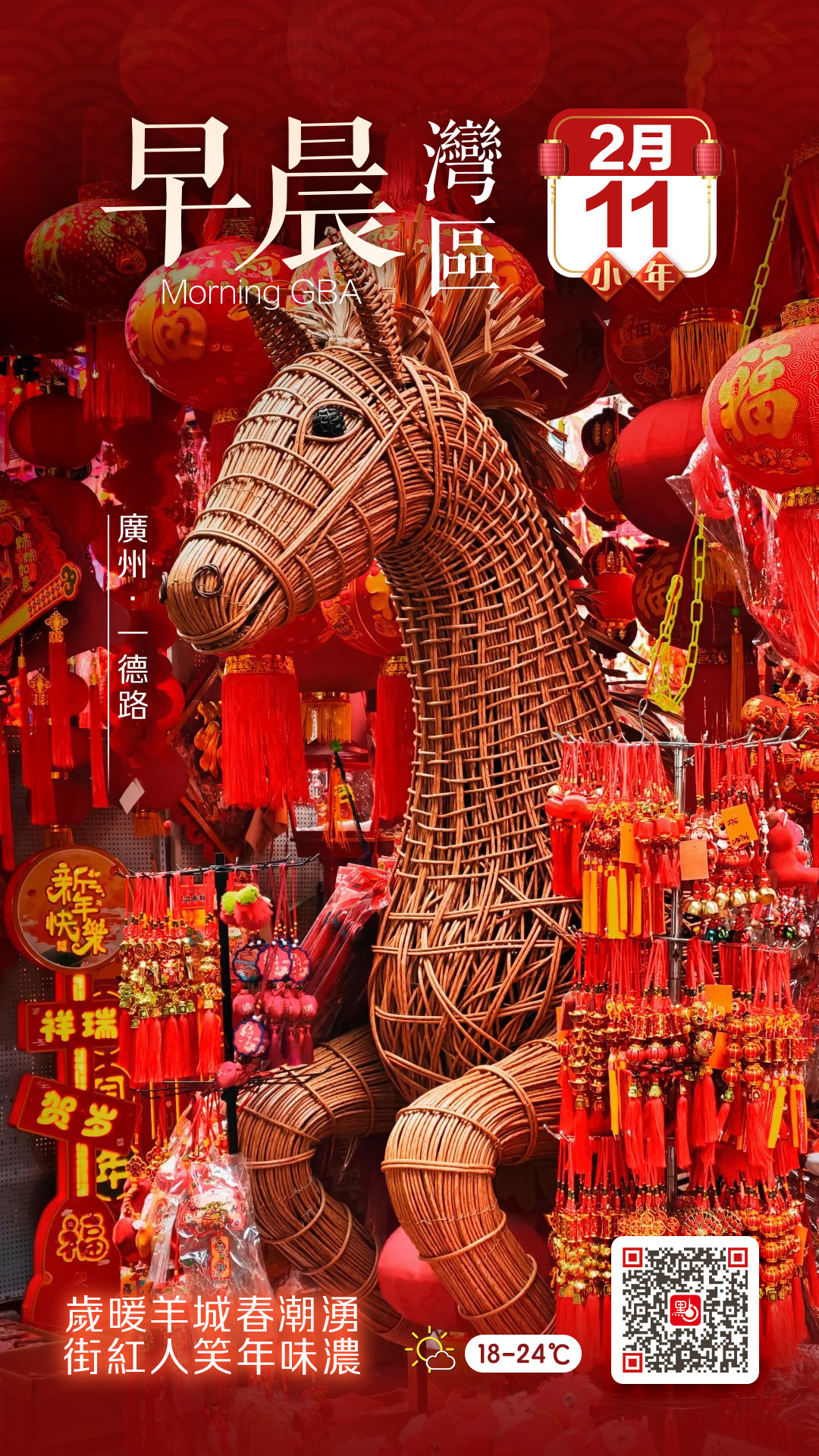 從地鐵6號線一德路站走出,滿目皆是琳琅滿目的紅。這紅,不只鋪滿攤位,更彷彿暈染了整條街的空氣。寫滿吉語的對聯、藏着心意的紅包,無不承載着人們對新年的期盼。叫賣聲、歡笑聲、議價聲交織迴盪,奏響了熱鬧的春節前奏。在這裏,你不僅能挑選到心儀的年貨,更能沉浸式體驗廣府街頭那份樸實而鮮活的節日喜悅。