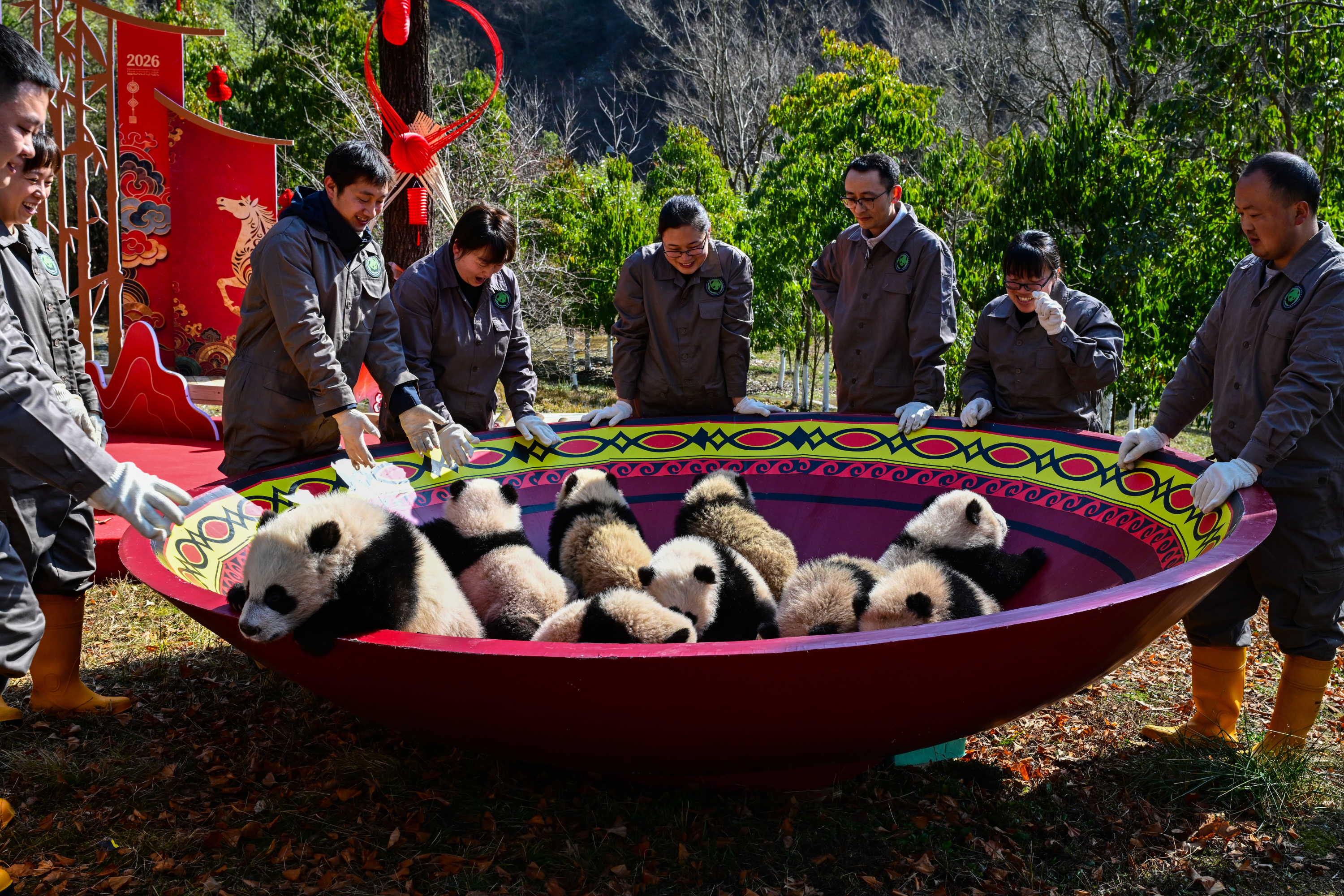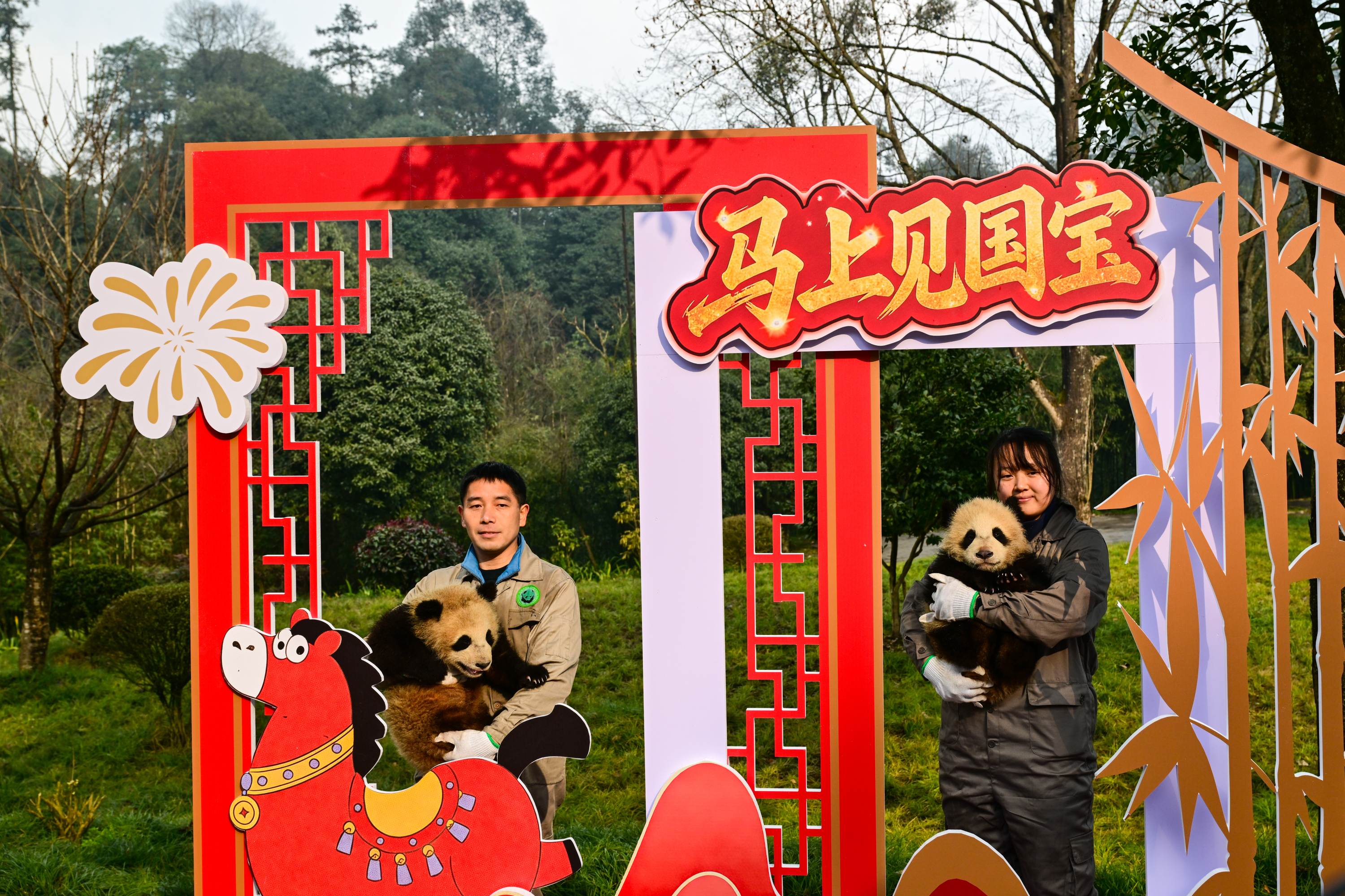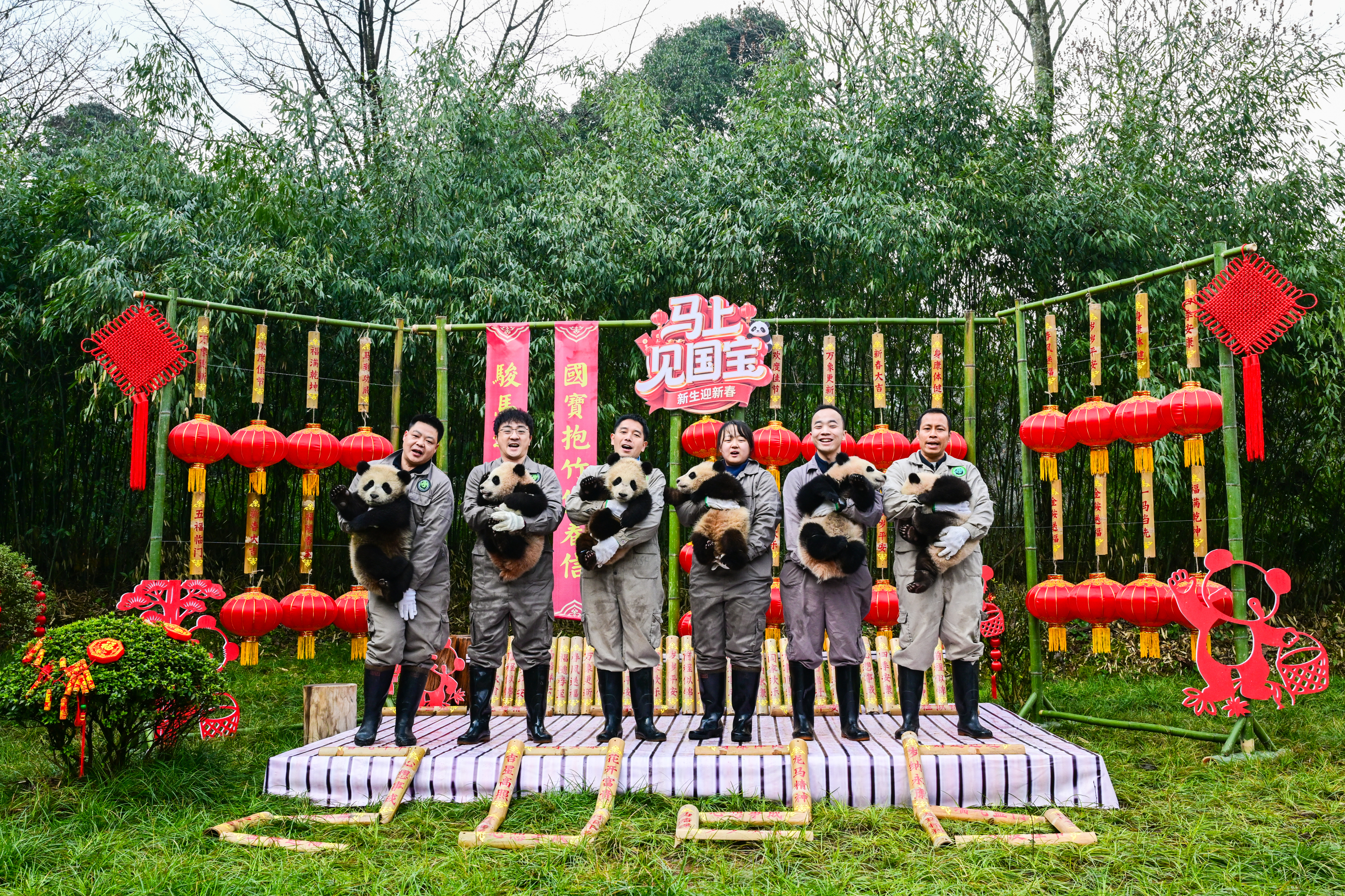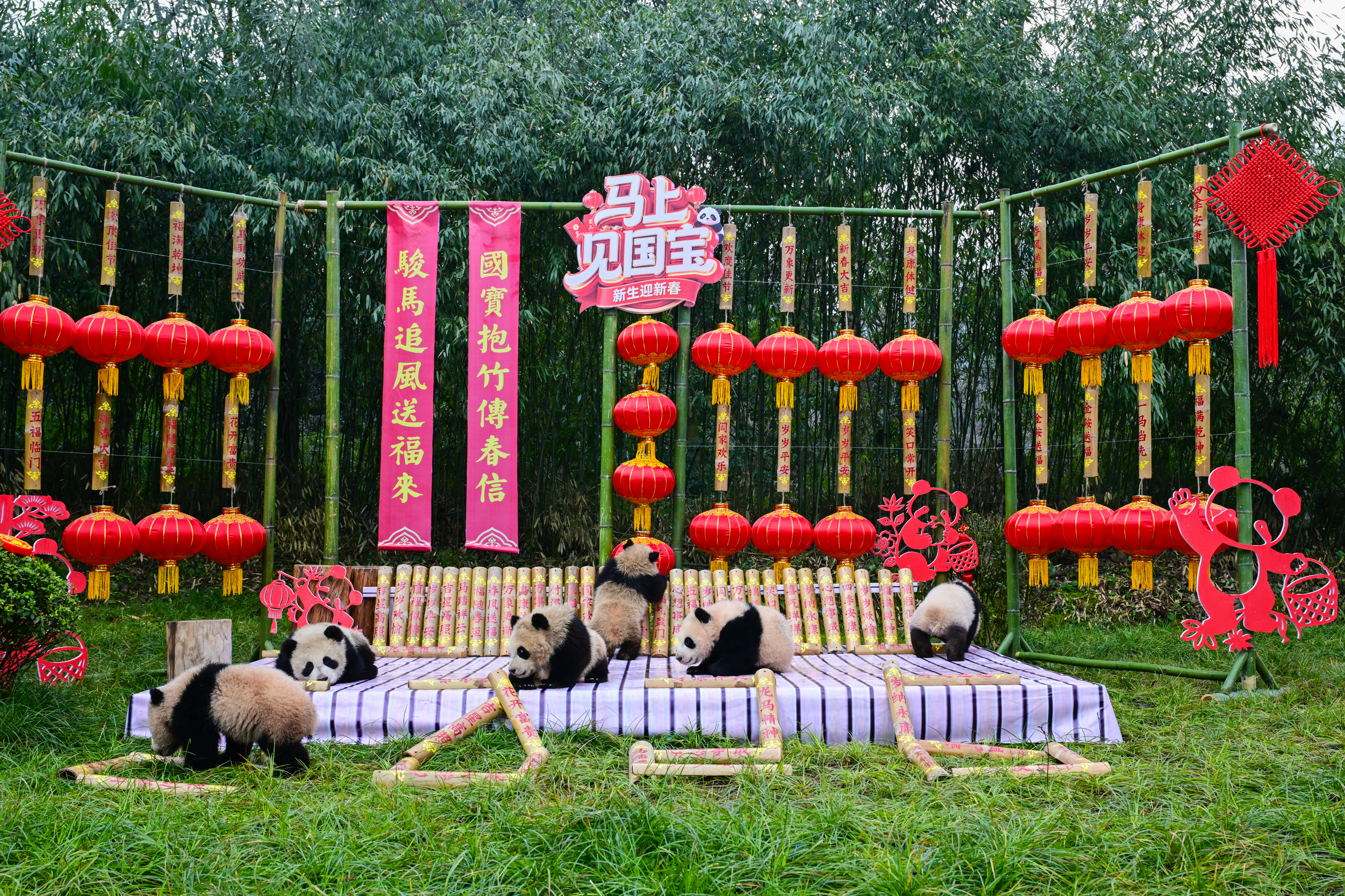 【點新聞報道】丙午馬年將至,2月11日,由大熊貓國家保護研究中心舉辦的「馬上見國寶」新春主題活動在多個點位展開。來自中國大熊貓保護研究中心(以下簡稱「熊貓中心」)和成都大熊貓繁育研究基地(以下簡稱「熊貓基地」)的30隻2025級新生熊貓寶寶齊亮相,向全國人民送上「憨態可掬」的新春祝福。
