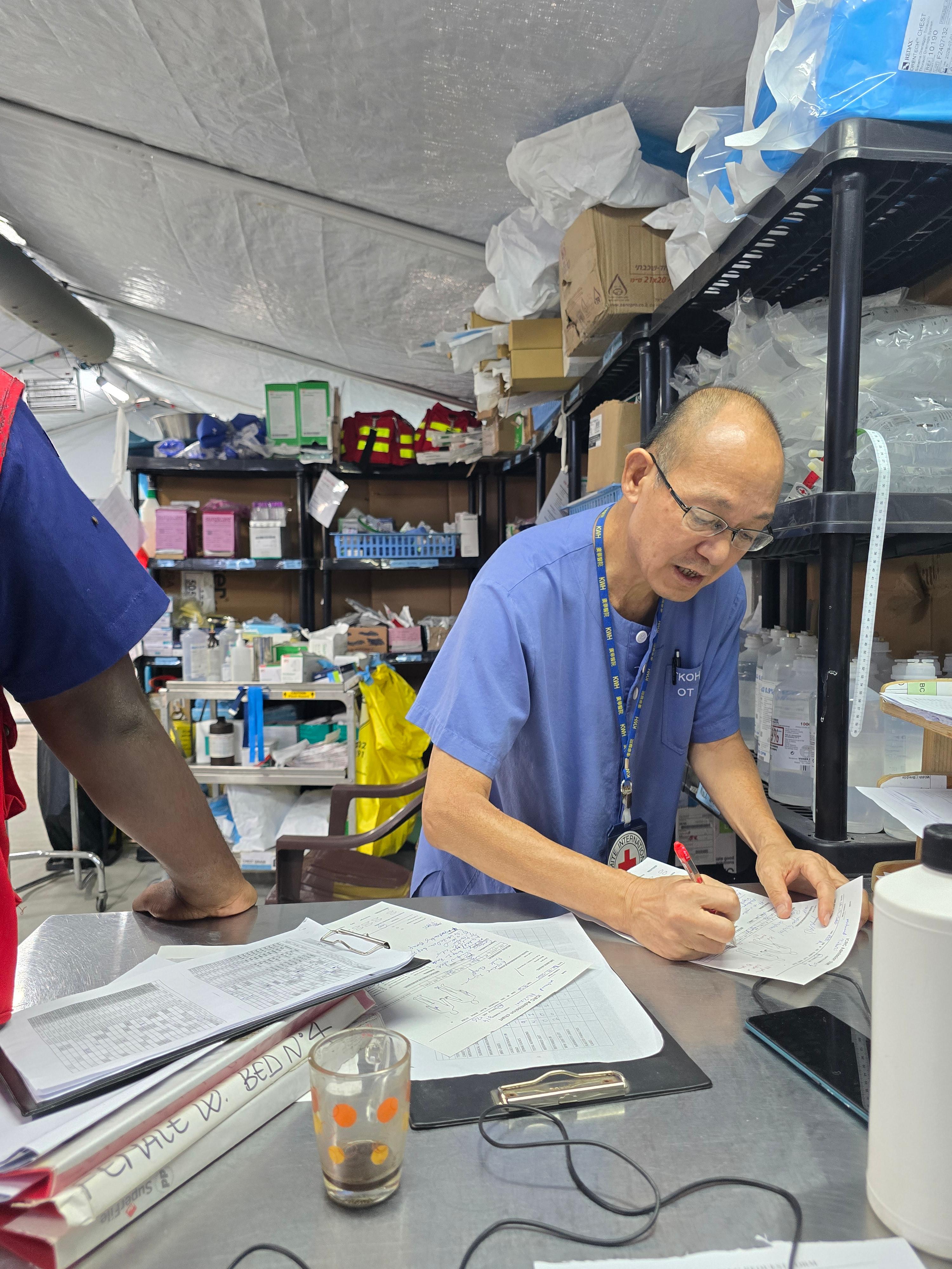 已經66歲的資深護士梁偉賢,退休前在公立醫院服務逾40年,並於2010年11月首次參與香港紅十字會的海外賑災任務。