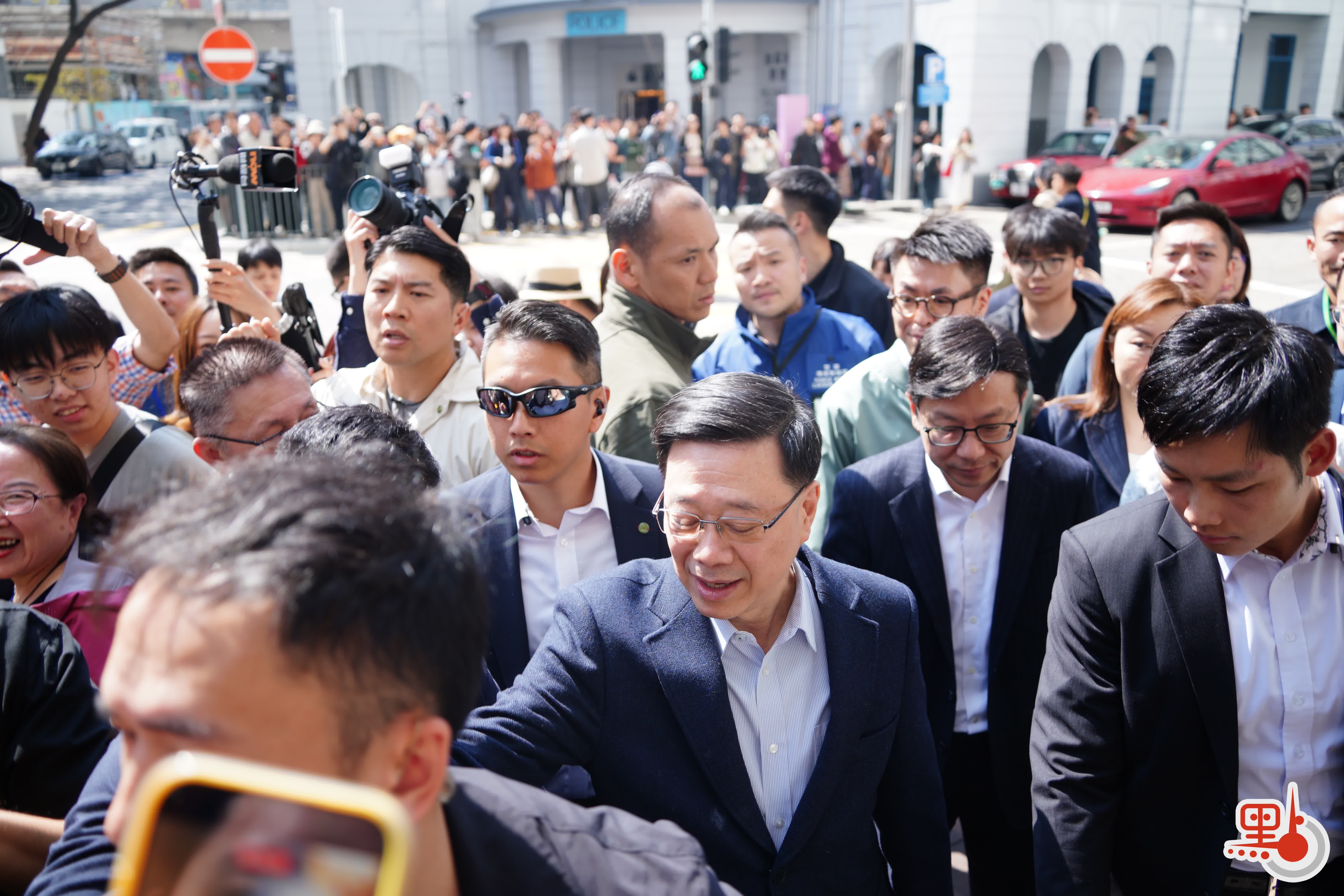 【點新聞報道】農曆新年將至,今日(13日)上午約11時半,李家超落區家訪,現身油麻地,親切跟沿途市民招手,道「新年好」。他祝市民「馬到功成」、「身體健康」。