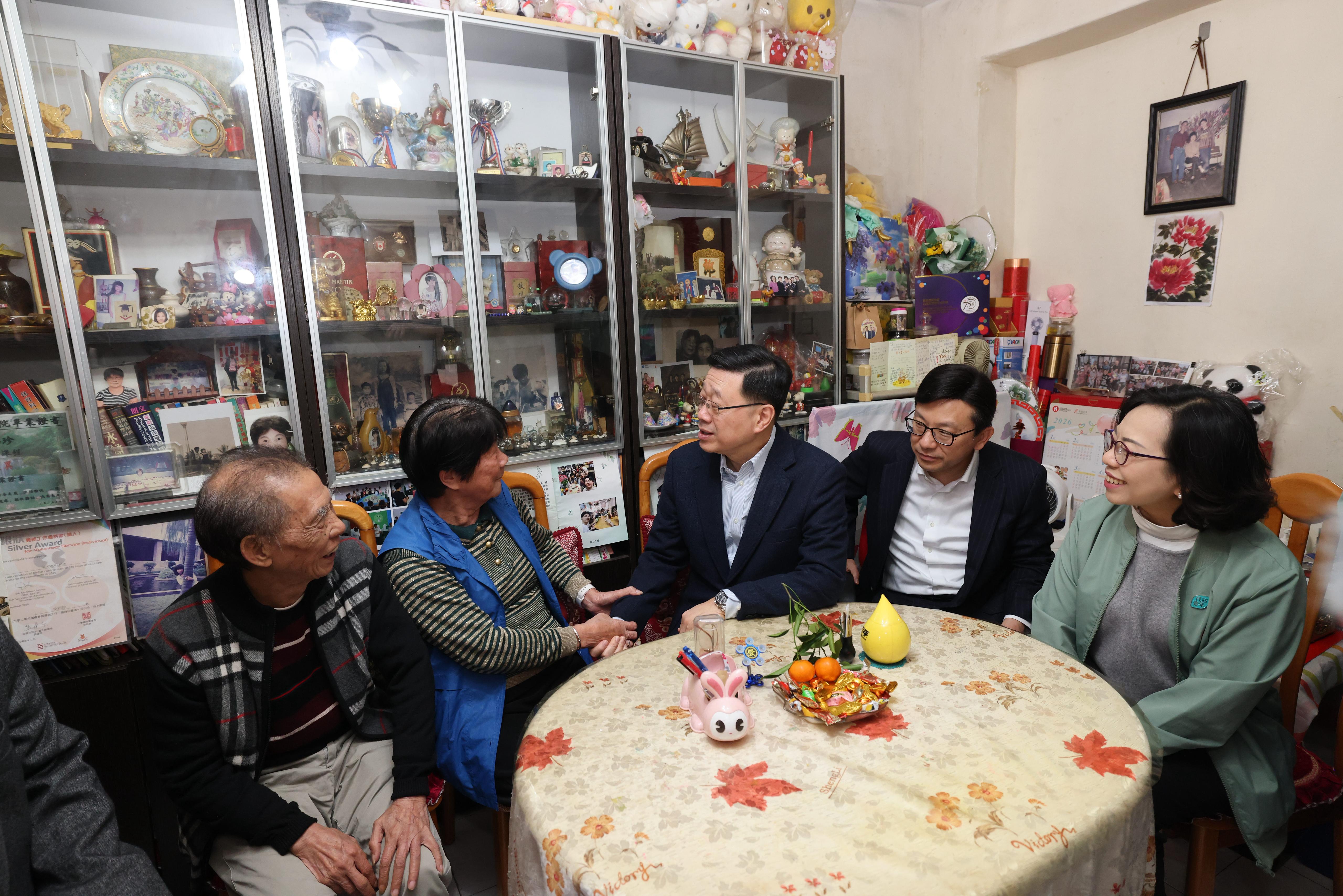 【點新聞報道】臨近農曆新年,特首李家超今日(13日)與民政及青年事務局局長麥美娟、勞工及福利局局長孫玉菡率團到油麻地駿發花園探訪街坊,了解基層家庭及長者的生活狀況。
