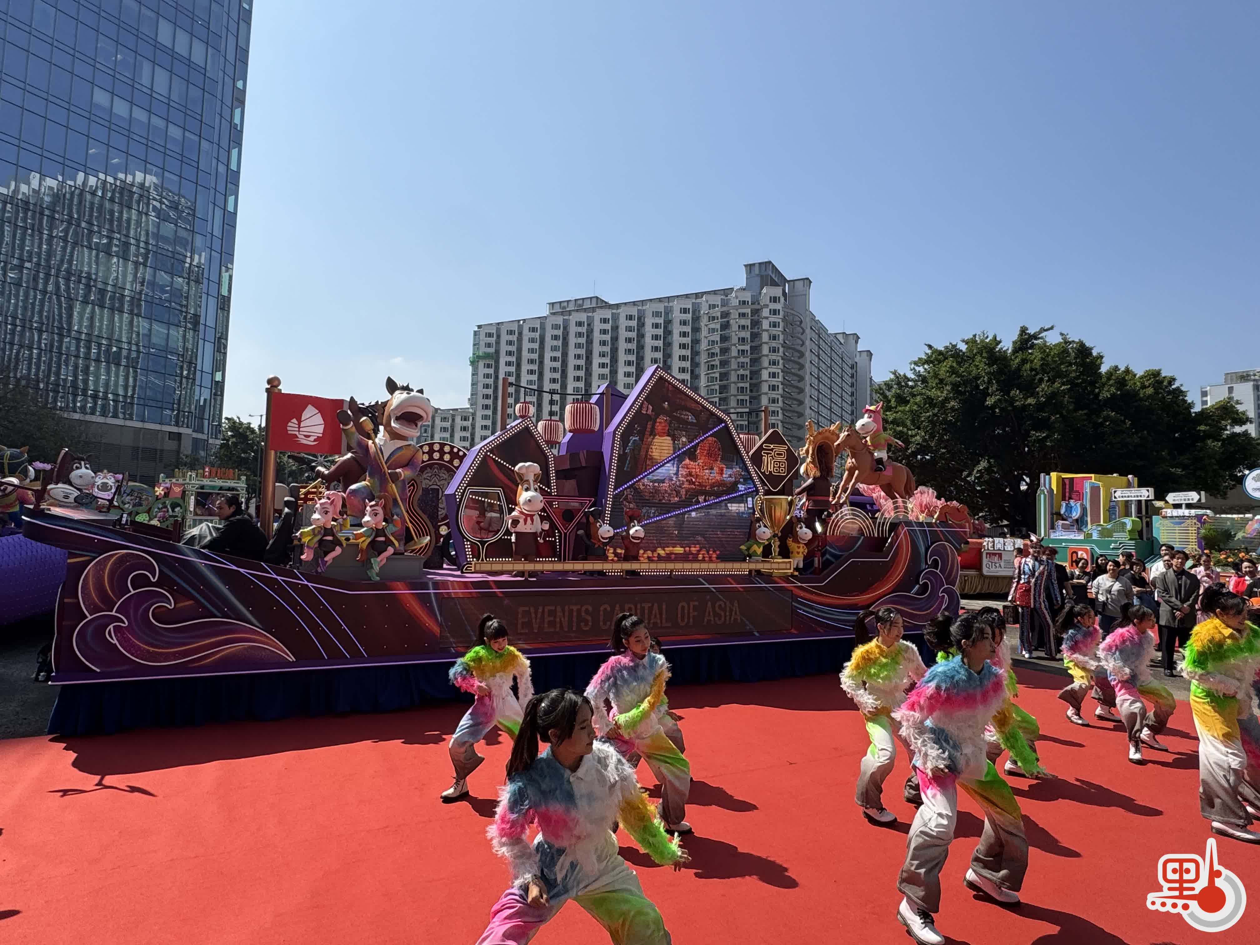 香港賽馬會與馬年更可謂是般配,其花車舞台中央設有3匹璀璨奪目的駿馬,象徵馬年朝氣蓬勃,巡遊當日,還將有馬會馬術隊騎手、亞洲錦標賽獎牌得主林立信及馬會見習騎師黃寶妮參與匯演。