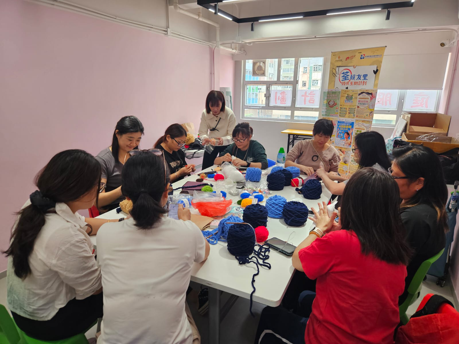 荃灣發展促進會有限公司透過由民政事務處贊助的鄰里互助小組,凝聚荃灣區及葵青區內一群同為家庭照顧者的婦女,她們透過共同興趣及潛能——編織,在小組過程中分享生活上的經驗和困難,建立互相支持的連結,共同成長。婦女表示,她們生活上無休止地承擔着無償的家庭照護責任,小組給予空間與資源讓一眾相同背景的成員聚首一堂閒話家常、交流編織技巧。婦女期望發展個人能力與事業,惟家庭責任使她們只能無奈尋找提供靈活工時的工作,市場上亦缺乏相應工作模式供基層婦女選擇。工作員發掘到婦女精巧編織手藝與她們的需要,提供平台讓她們以自身技能發展事業。