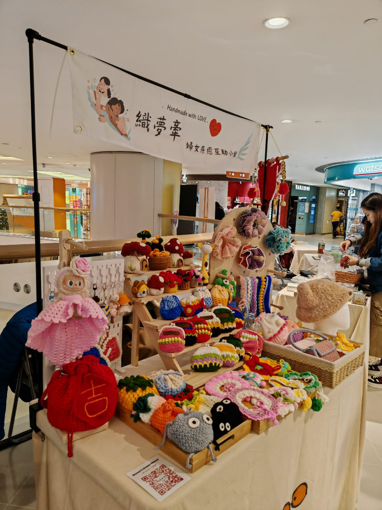 為發揮婦女的技能及提升她們在社區及經濟活動中的參與度,織夢牽一群熱愛編織的婦女,以編織手藝發展初創事業。計劃提供機會、資源平台和決策權予婦女,使她們能夠參與決策並籌劃經濟活動,有助讓她們兼顧家庭同時增強她們的社區及經濟能力,提升自我價值。為累積試業經驗,織夢牽於1月初在荃灣區人流旺的商場愉景新城擺設手作市集,宣傳計劃理念與婦女編織成品,市集收益撥入小組基金,延續織夢牽理念,幫助社區婦女發展及舉辦義工活動,服務更多有需要人士。